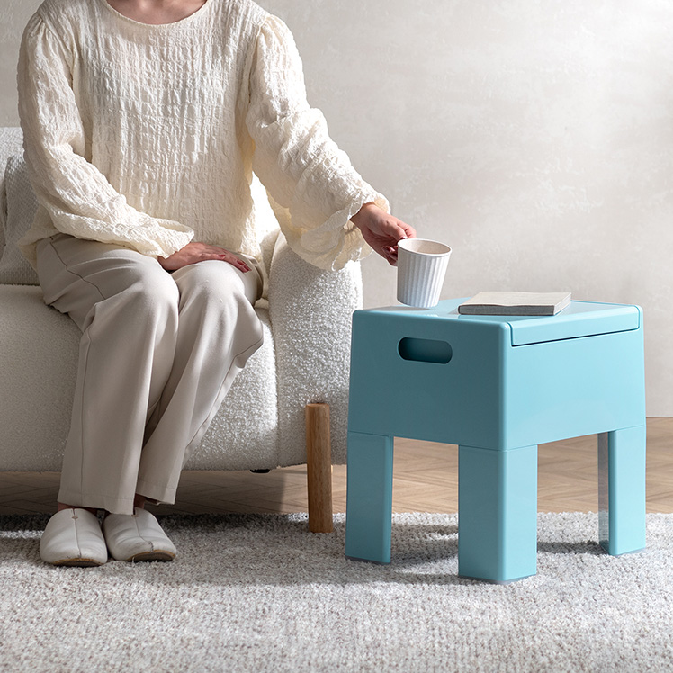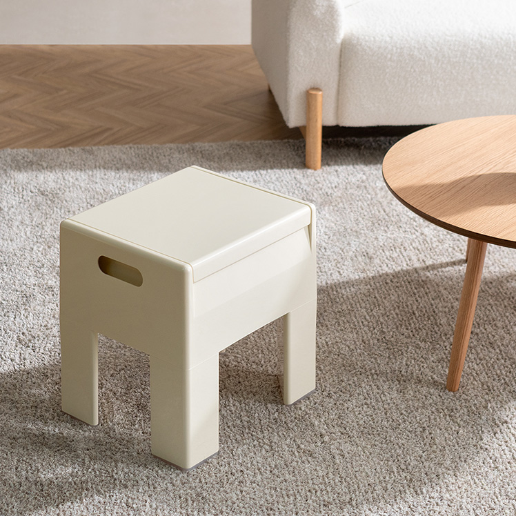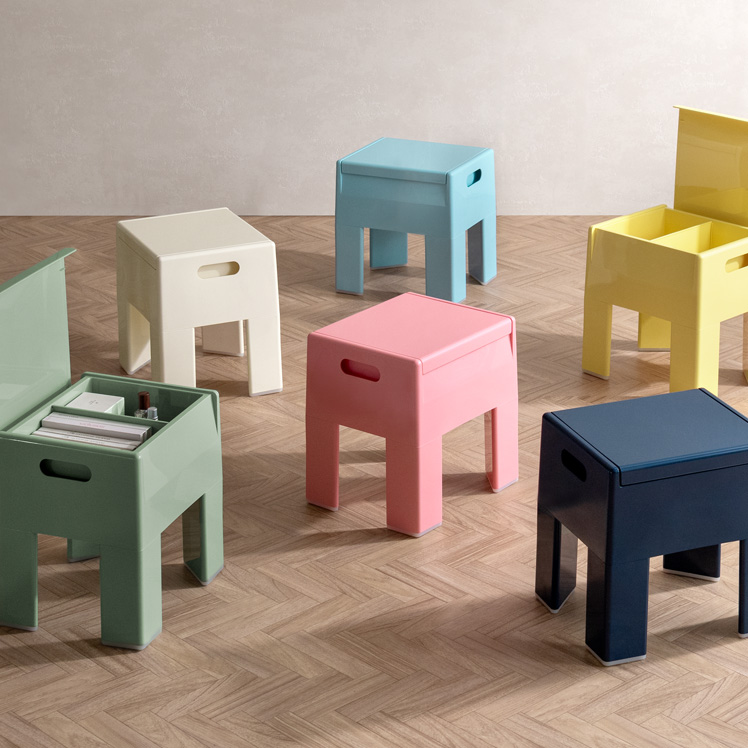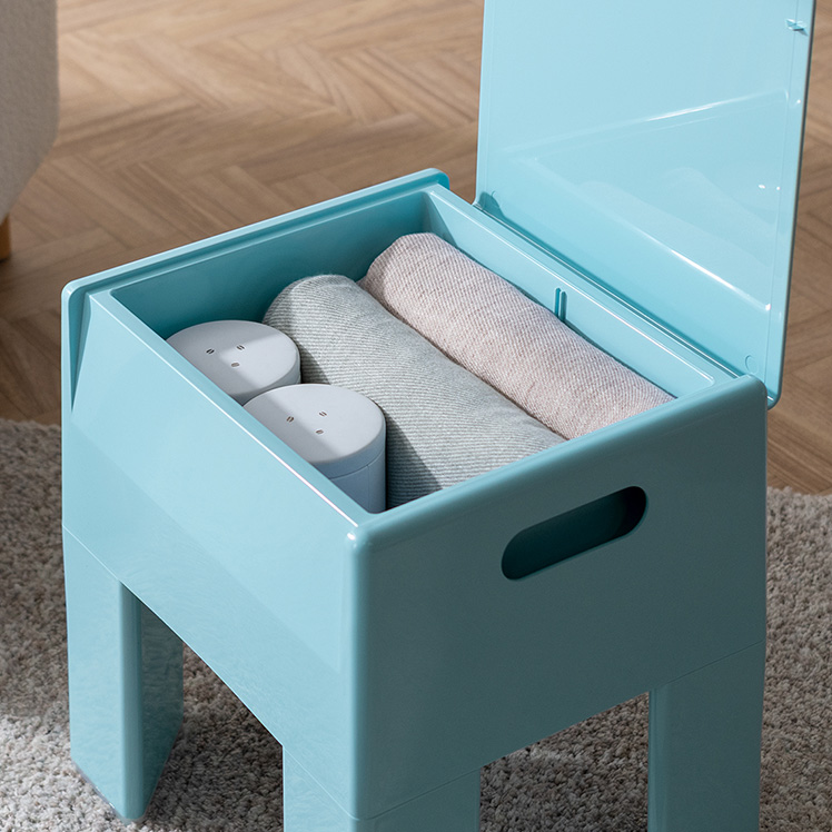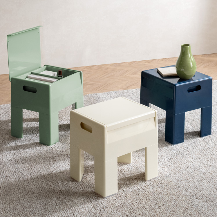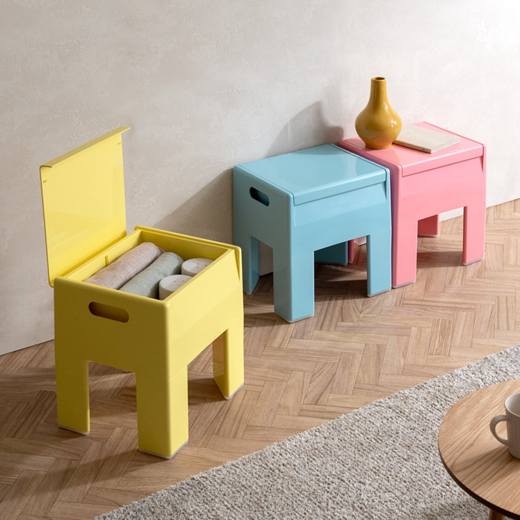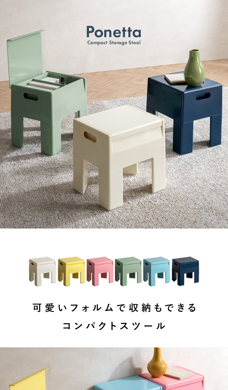 収納スツール Ponetta 〔ポネッタ〕/ツヤ感と丸みのあるデザインがレトロ可愛い収納スツール。気軽に座れるコンパクトなスツールは座面部分のフタを開くと中が収納スペースになっており、雑誌や小物をサッと収納できます。軽量で持ち運びもカンタン。6カラーからお好みでお選びいただけます。