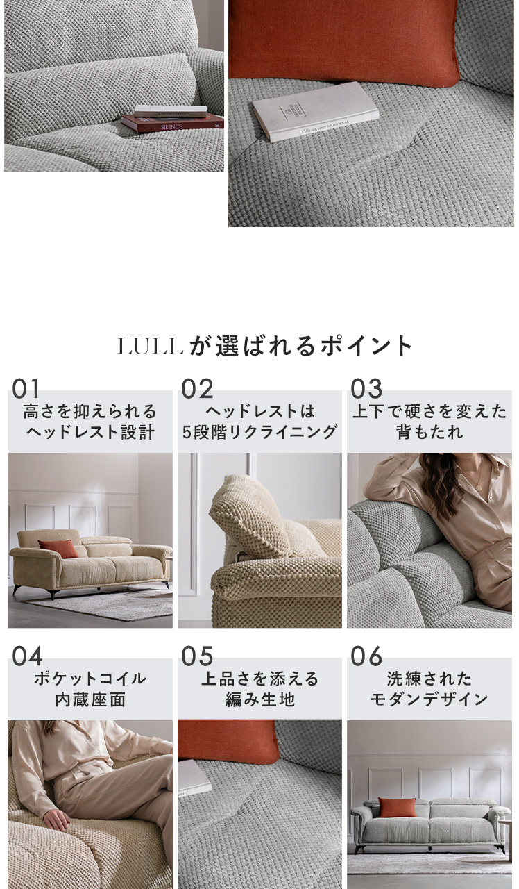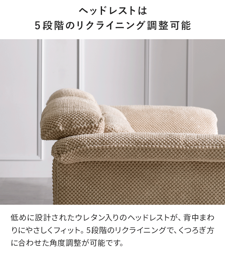 可動ヘッドレスト付きソファ LULL〔ラル〕