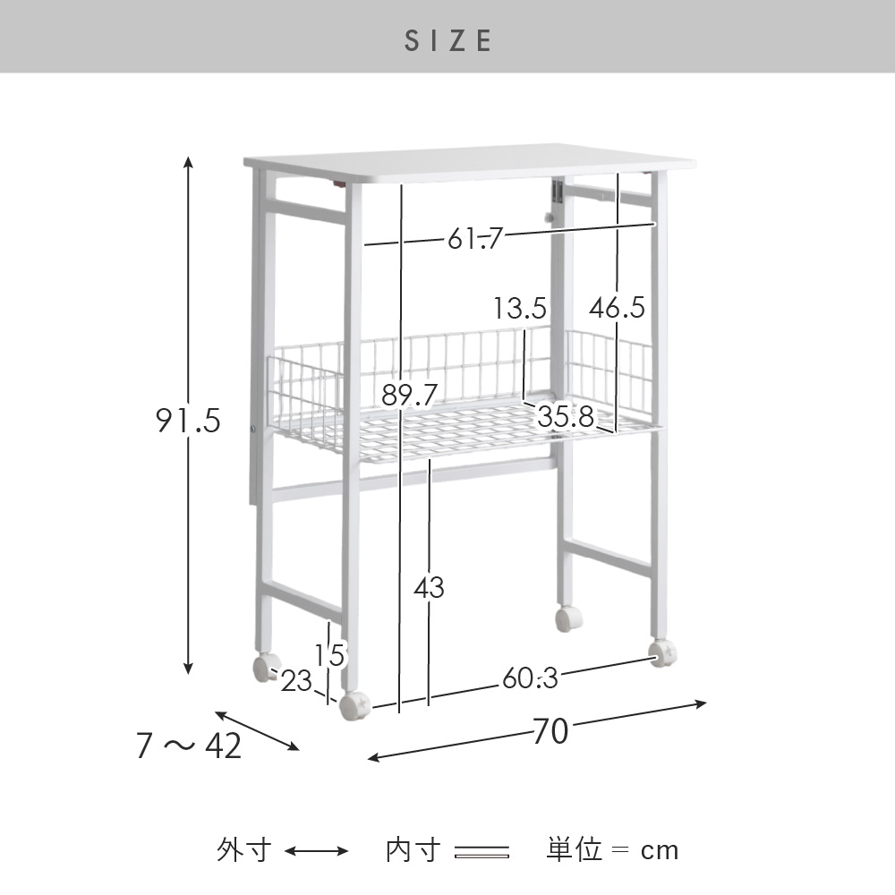 | サイズ | 約幅70×奥行き7〜42×高さ91.5cm |