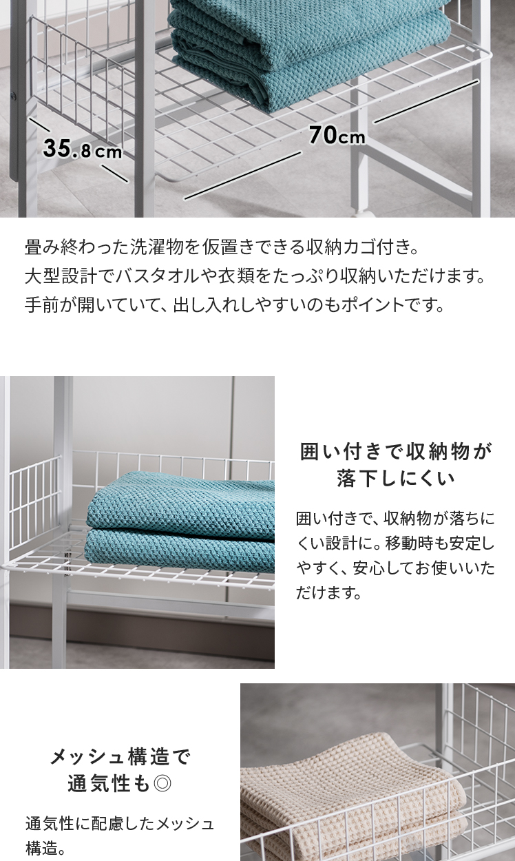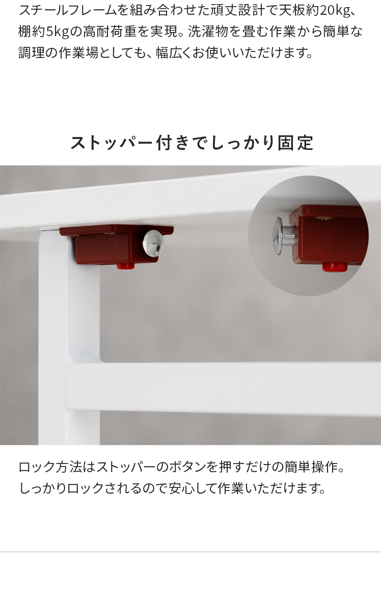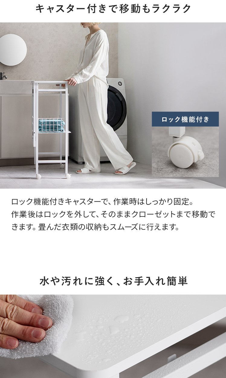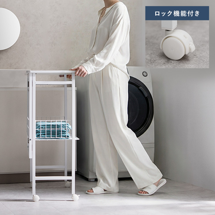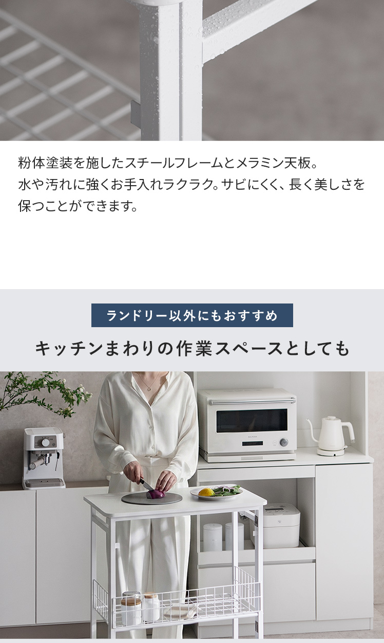 ランドリー作業台 折りたたみ式 作業台 幅70cm ランドリーワゴン 収納 キッチンワゴン キッチン作業台 省スペース コンパクト 幅7cm 隙間収納 作業スペース キャスター付き ロック機能付き 収納かご フック付き 作業机 棚付き スリム ストッパー付き ランドリー キッチン 盛りつけ台 洗濯物置き シンプル ホワイト