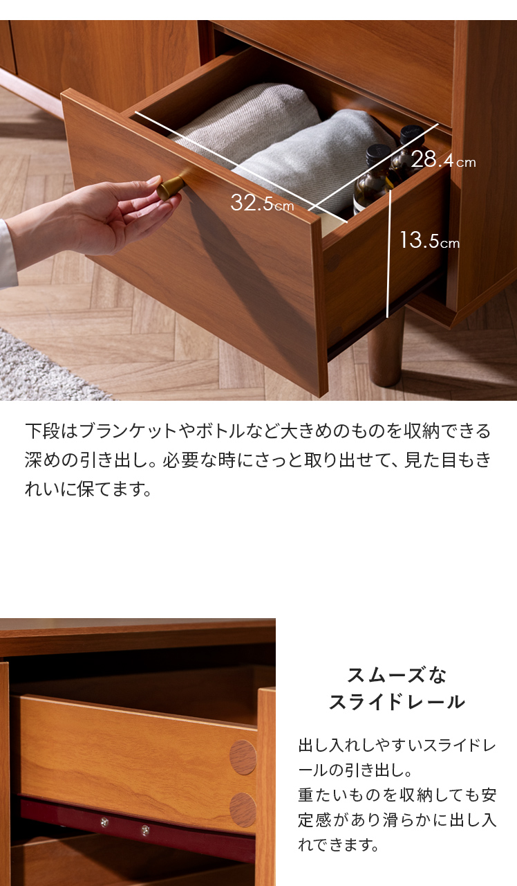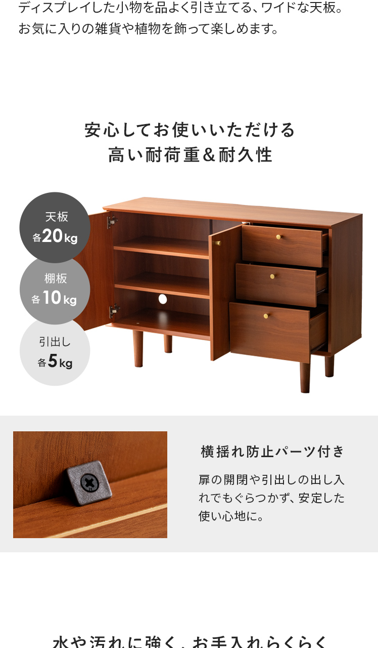 | 耐荷重 | 天板/約20kg、可動棚/各約10kg、引き出し/各約5kg |