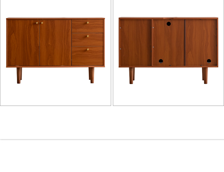 収納家具 チェスト ラック 引き出し 扉収納 可動棚 11段階 マホガニー調 木目調 木製 丸脚 大容量 小物収納 収納棚 コード穴 コードスリット ミッドセンチュリー ヴィンテージ ワイド 赤茶 ブラウン