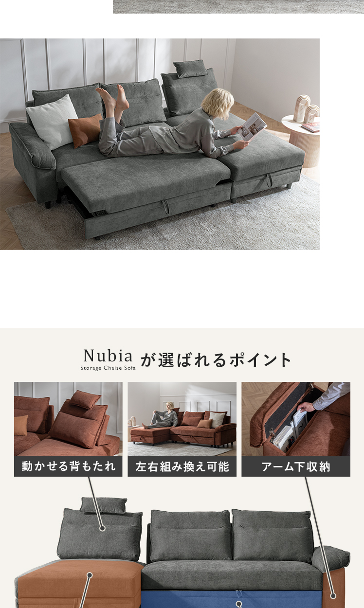 収納付き2WAYカウチソファ Nubia(ヌビア)