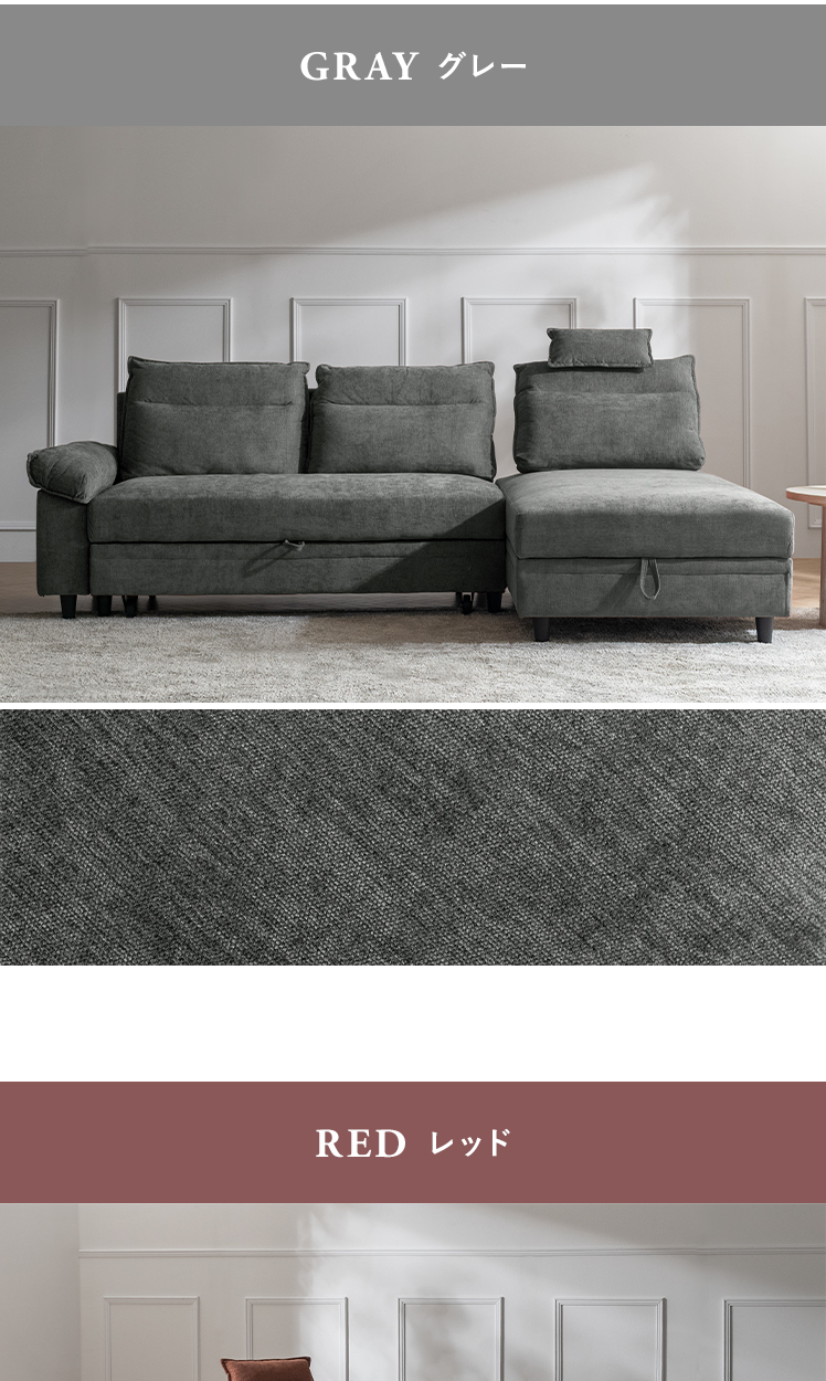 カウチソファ ソファ ソファー 幅250cm コーナーソファ アームソファ 2way 3人掛け 収納付き 跳ね上げ収納 アームレスト スライド式 フットレスト ヘッドレスト 収納 ウレタン 大容量 布 ファブリック ワイド ゆったり ごろ寝 座面広々 北欧 モダン ナチュラル シンプル リビング おしゃれ グレー レッド