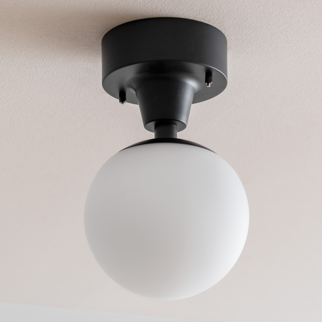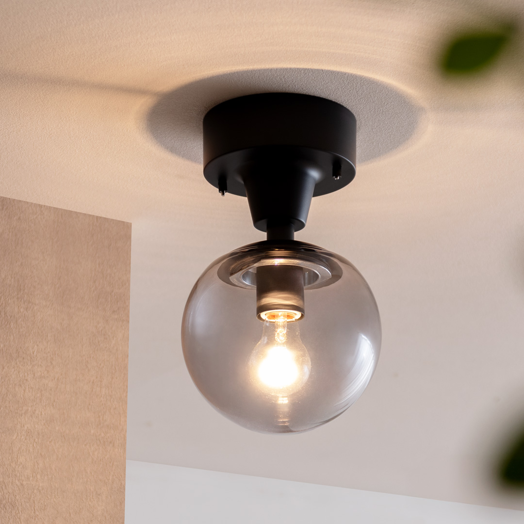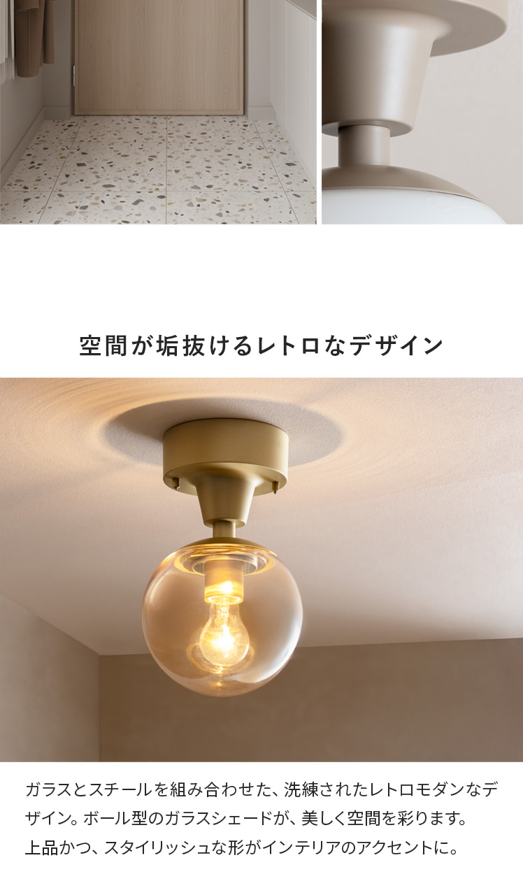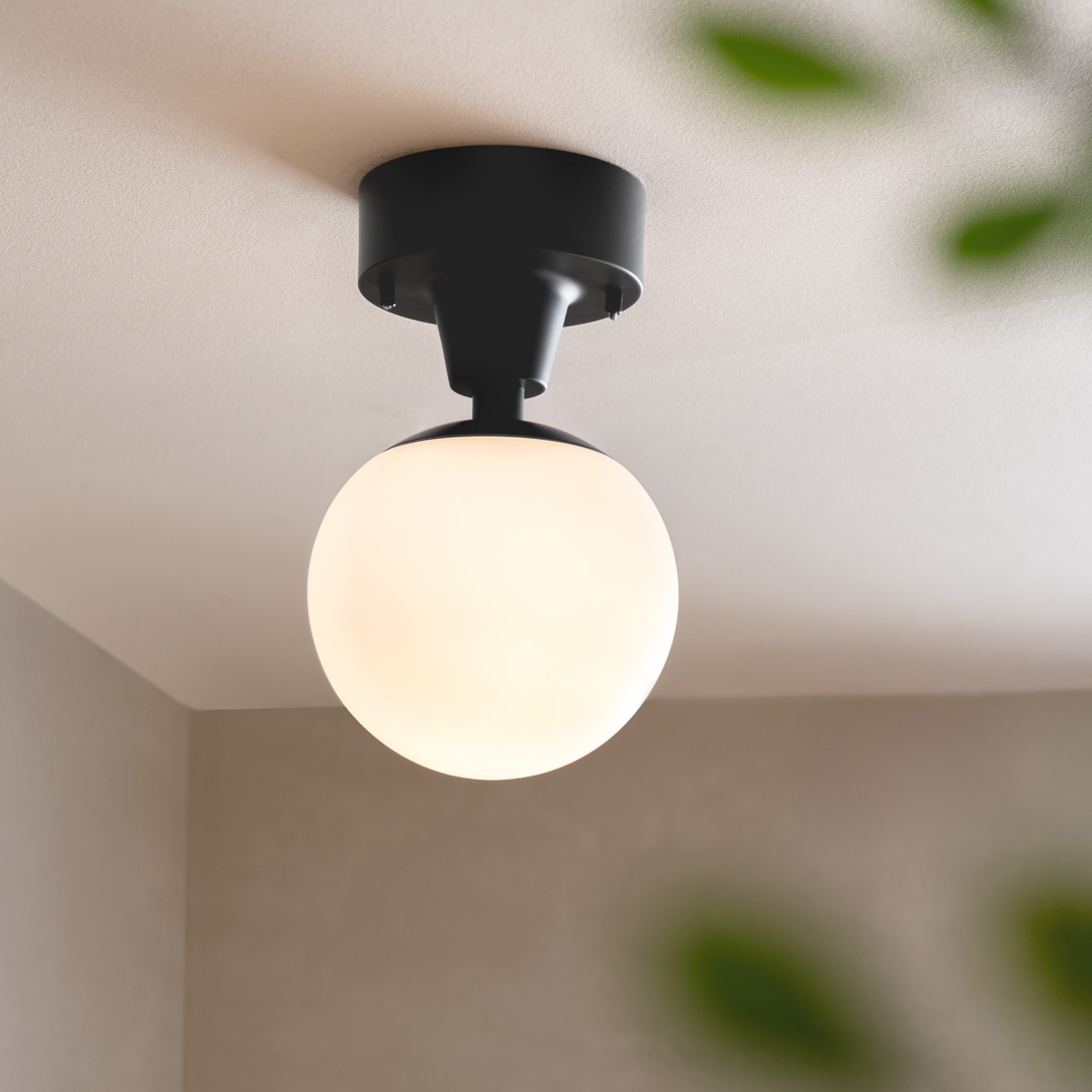 シーリングライト おしゃれ ライト 照明 天井照明 ボール型 球型ライト ガラスシェード 1灯 LED対応 E17口金 玄関 キッチン 洗面所 トイレ モダン レトロ ホワイト ブラック ゴールド アンバー グレージュ ガラス