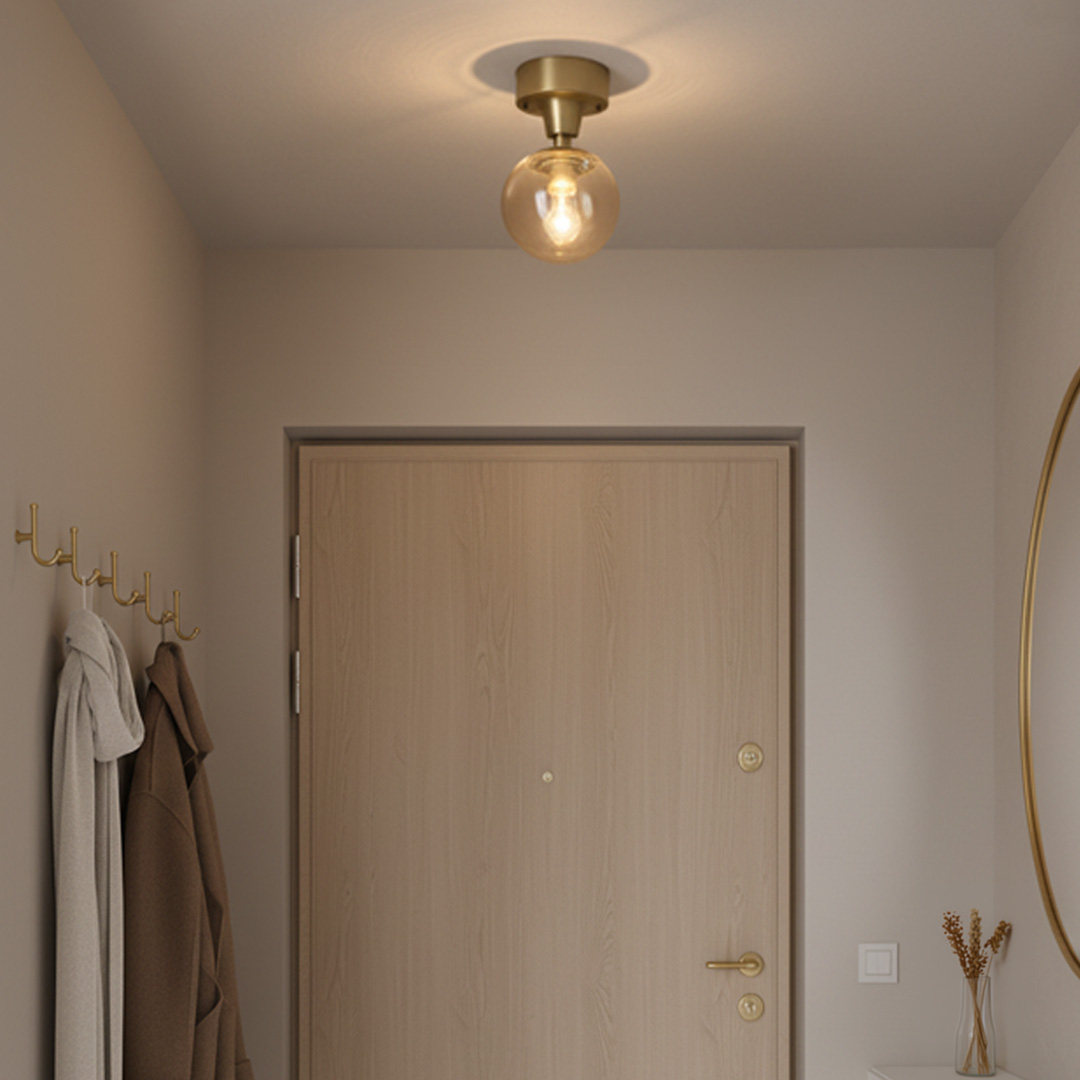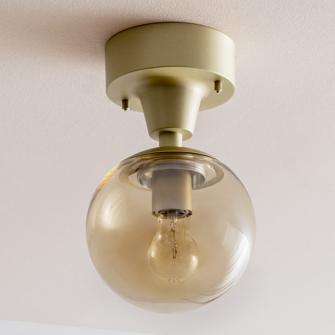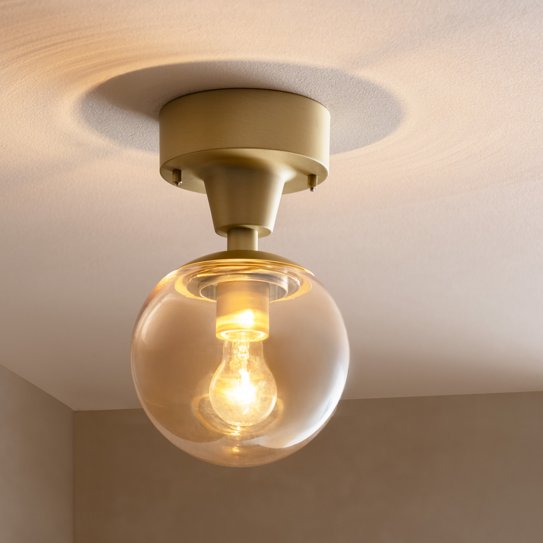 シーリングライト おしゃれ ライト 照明 天井照明 ボール型 球型ライト ガラスシェード 1灯 LED対応 E17口金 玄関 キッチン 洗面所 トイレ モダン レトロ ホワイト ブラック ゴールド アンバー グレージュ ガラス