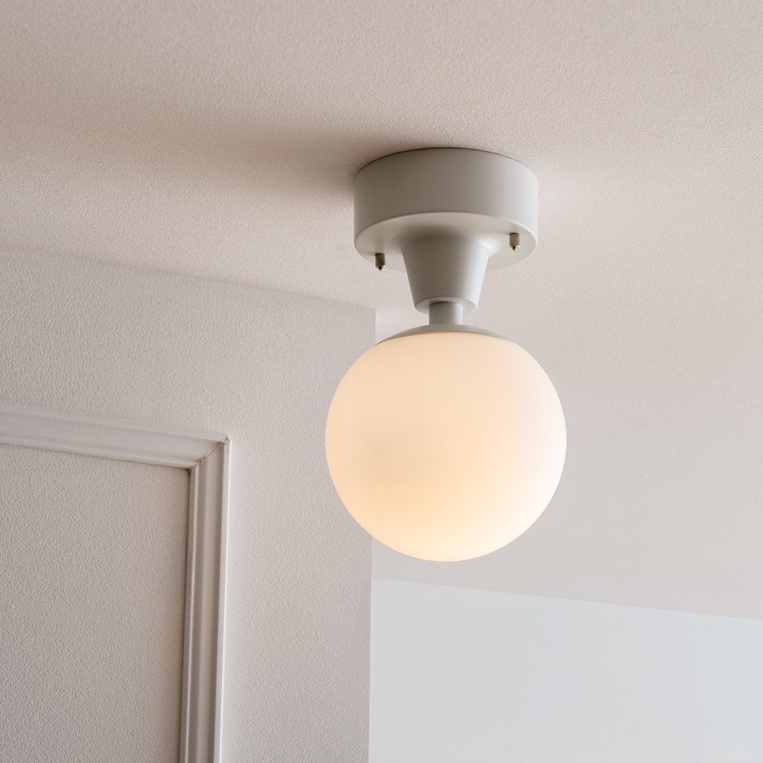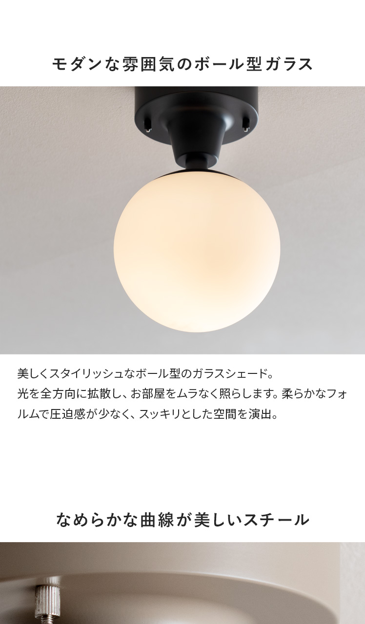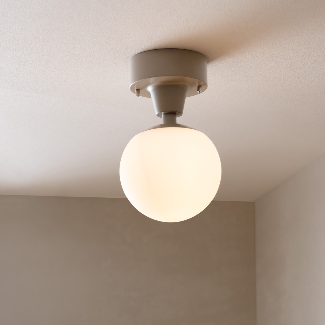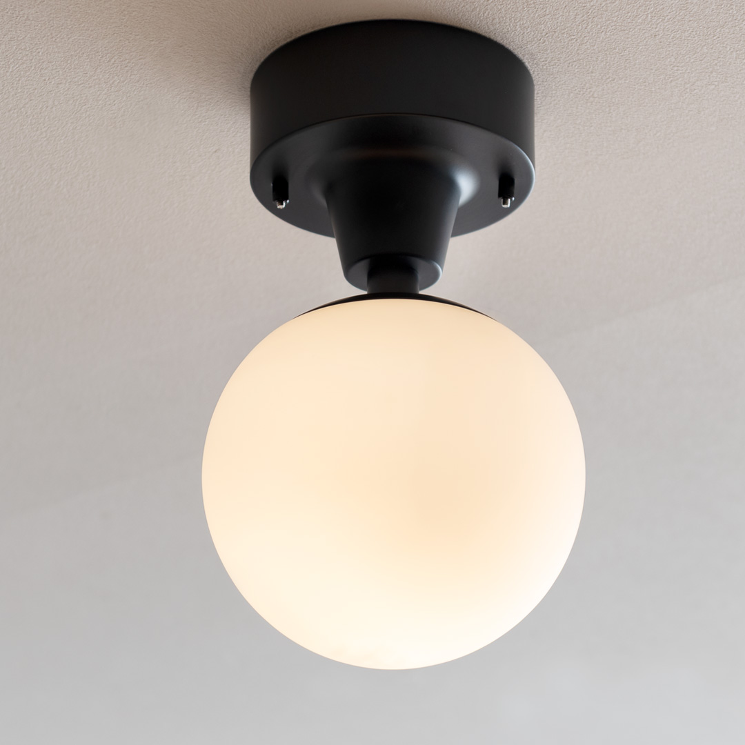 1灯シーリングライト ORBA〔オルバ〕/アートのような洗練されたデザインが、レトロモダンな空間をつくりだすシーリングライト“ORBA(オルバ)”。玄関や洗面台にぴったりの1灯タイプが登場。ボール型のガラスシェードがセンスのいいお部屋をつくります。