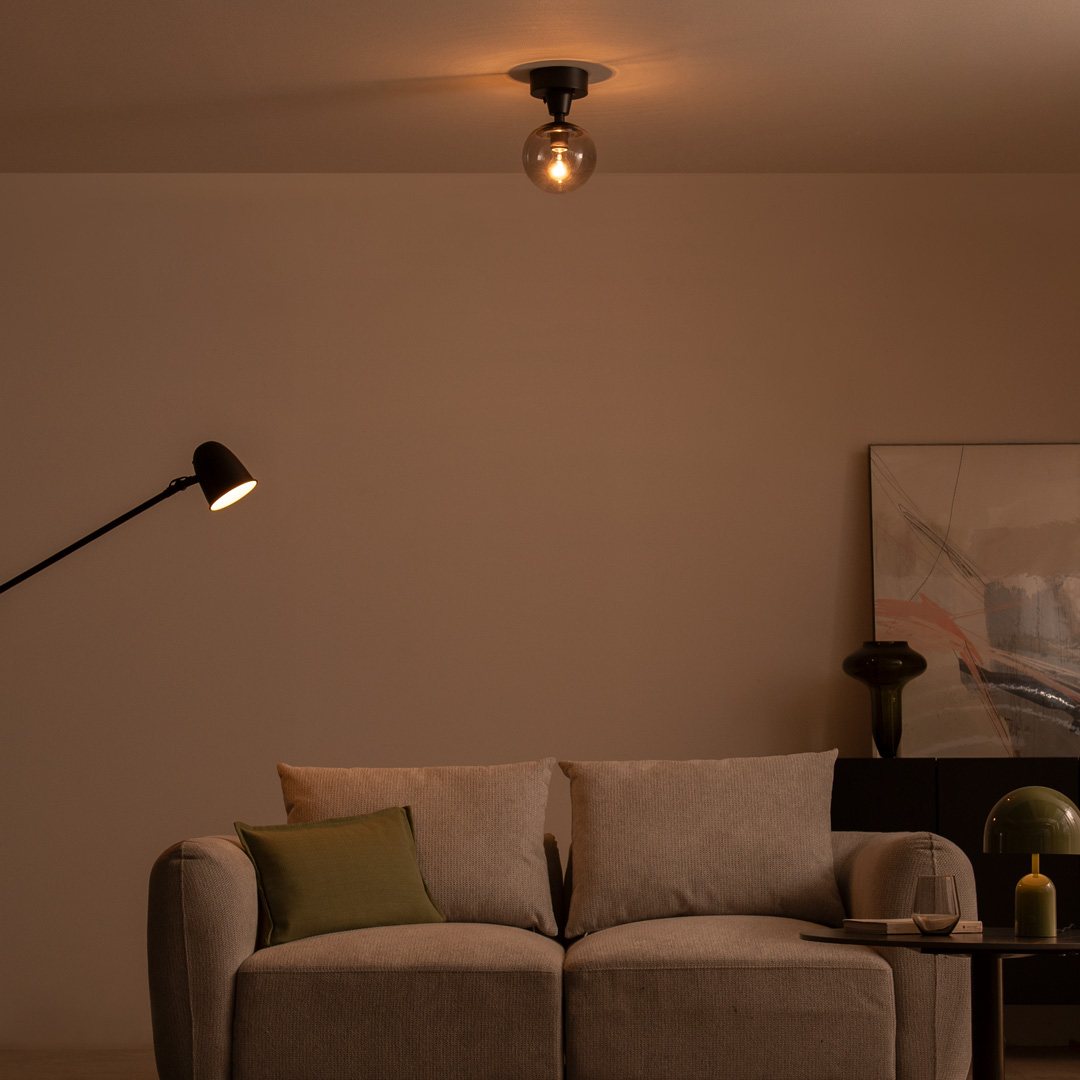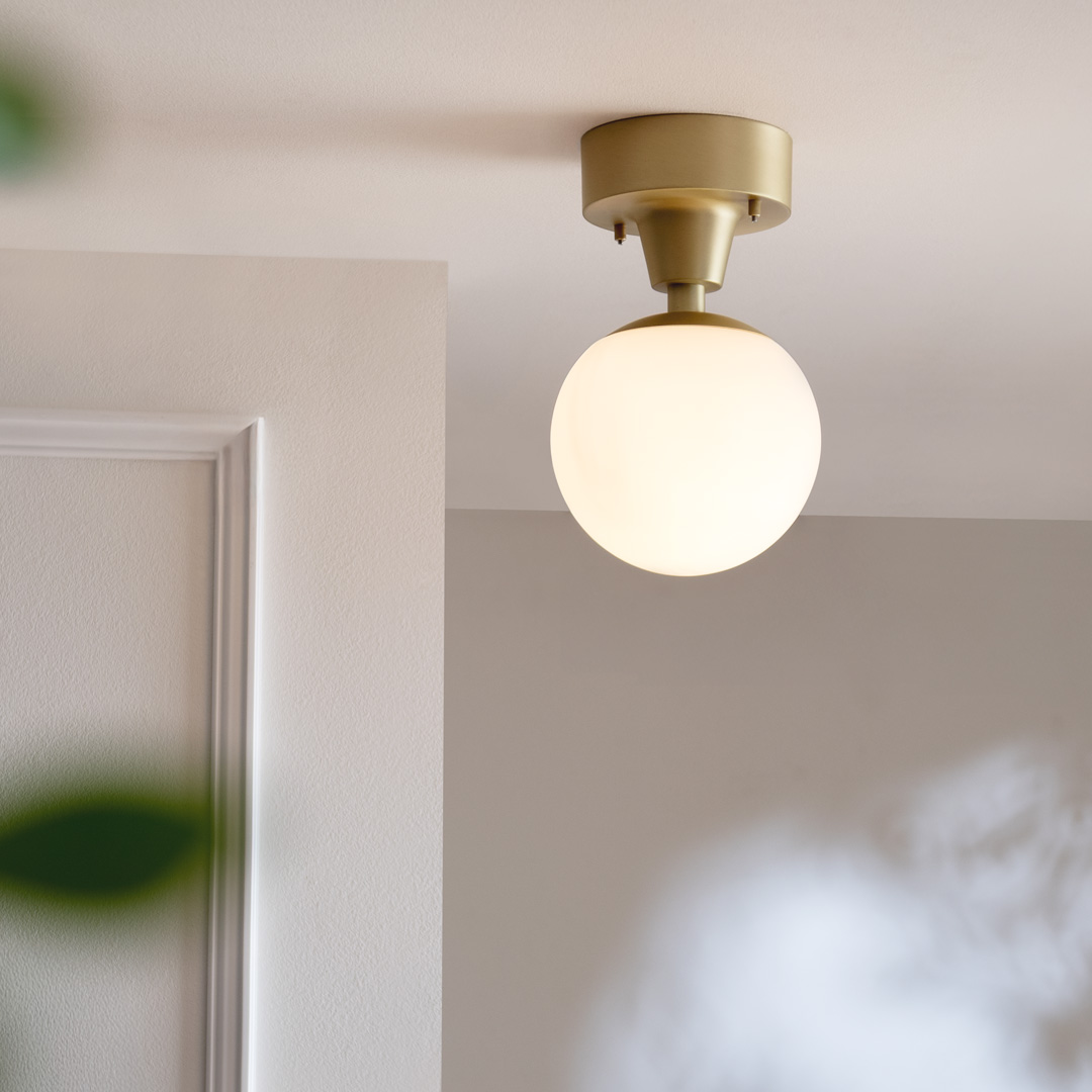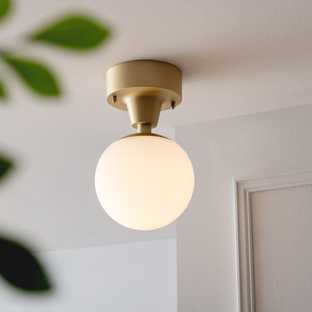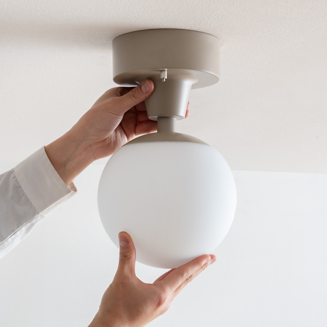 1灯シーリングライト ORBA〔オルバ〕/アートのような洗練されたデザインが、レトロモダンな空間をつくりだすシーリングライト“ORBA(オルバ)”。玄関や洗面台にぴったりの1灯タイプが登場。ボール型のガラスシェードがセンスのいいお部屋をつくります。
