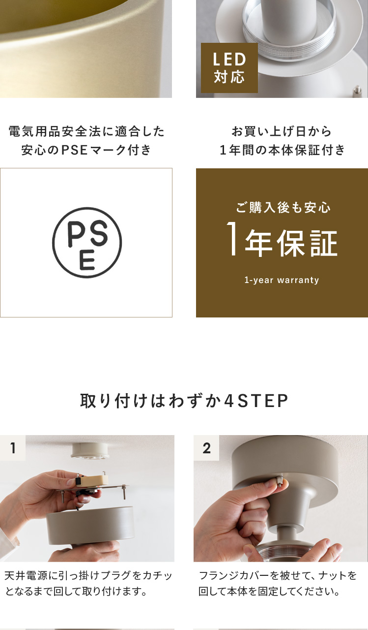 | 備考 | 組立式(組立て時間約10分) ※若干の個体差により、表記サイズと多少の差異が生じる場合がございます。 ※こちらの商品には電球は付属しておりません。 ※照明本体に点灯・消灯スイッチがないタイプとなっております。 設置をご検討頂いておりますお部屋の壁に、天井照明用スイッチがあるかご確認の程お願いいたします。 |