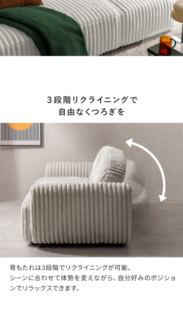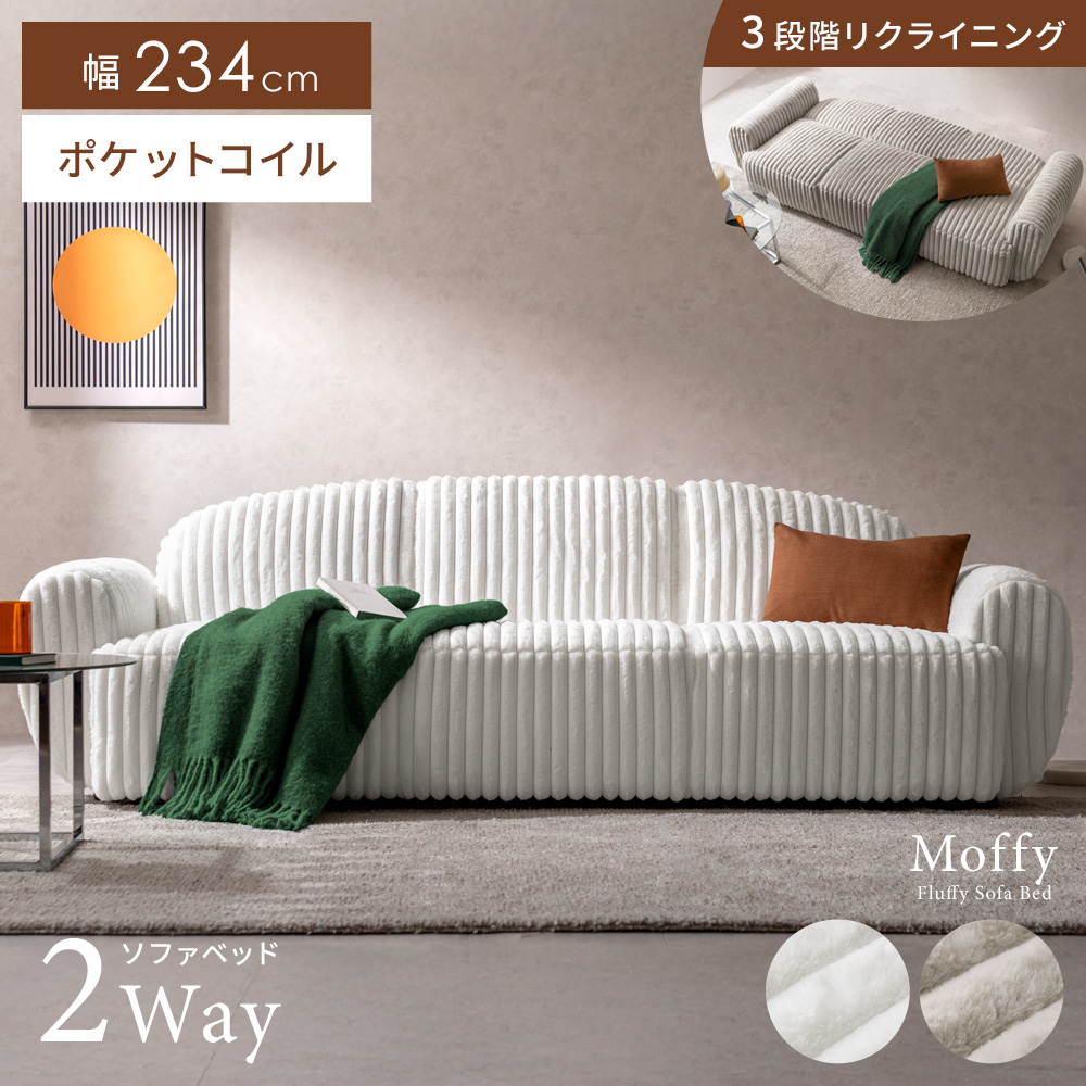 ソファベッド ソファ 幅234cm ソファー ベッド ソファーベッド 3人掛け 2人掛け ローソファ 3段階 リクライニング 2way ウレタン ポケットコイル おしゃれ ふわふわ ワイド ゆったり ファブリック コーデュロイ 布 座面広々 モダン シンプル ホワイト グレージュ