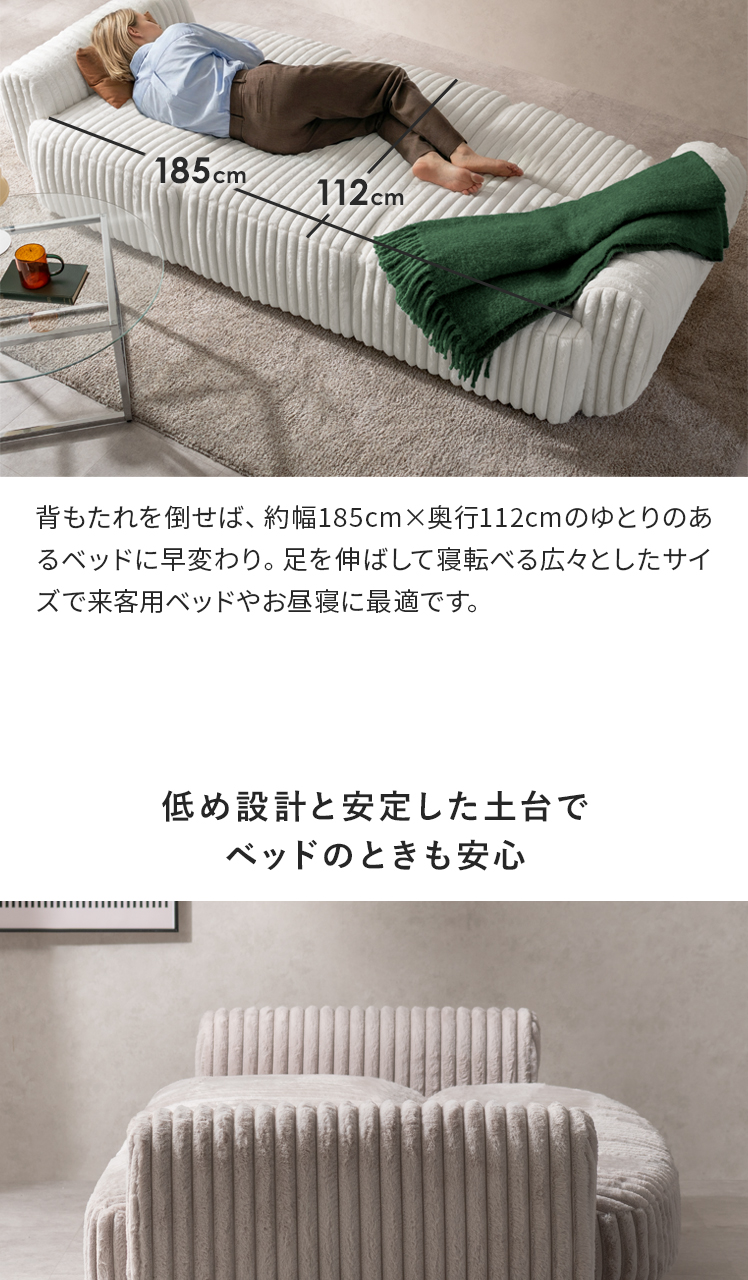 | 耐荷重 | ソファ状態/約300kg、ソファベッド状態/約200kg |
