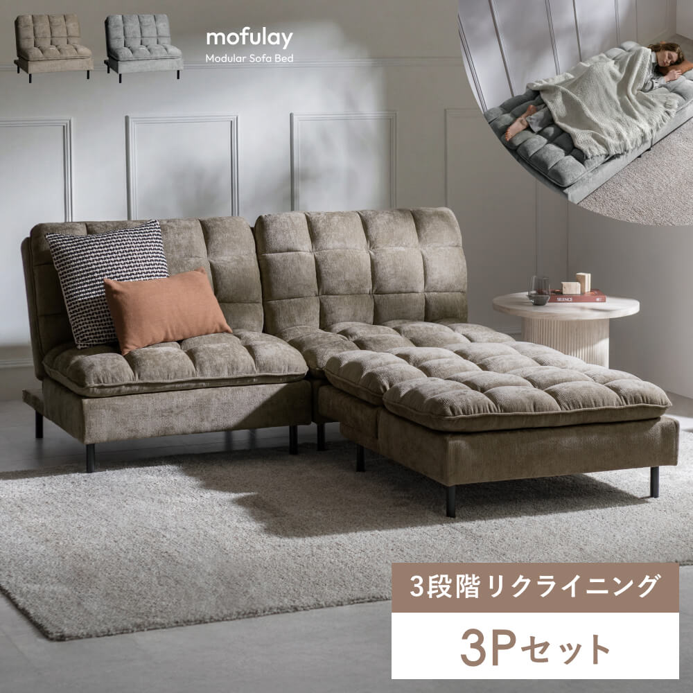 ソファベッド ソファ ユニットソファ ベッド オットマン ソファー 3人 3人掛け 3P 3Pソファ カウチソファ 滑り止め かわいい 北欧 モダン キルティング ゆったり 3段階 リクライニング 脚取り外し可能 フロアソファ ローソファ 省スペース セパレート スチール脚 ふかふか コーナーソファ フルフラット パーソナルソファ おしゃれ 連結 L字 座面広々 ワイド ファブリック グレー グレージュ