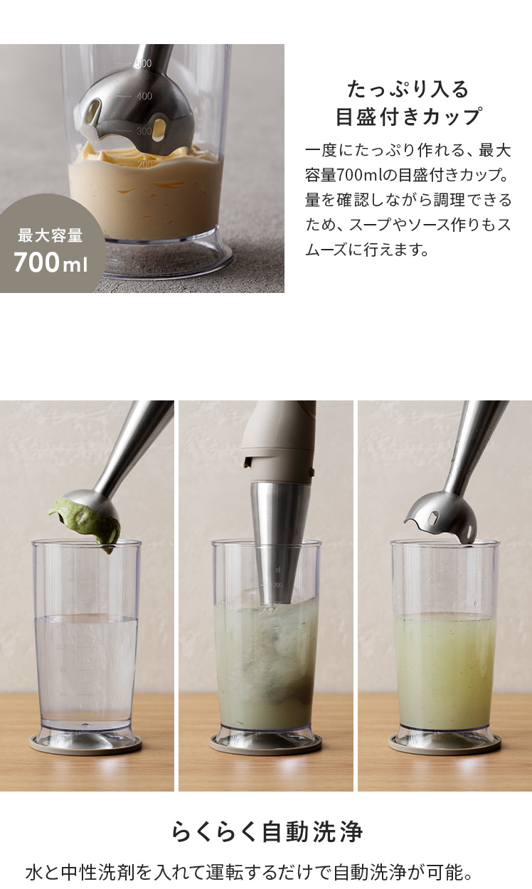 砕く 泡立てる ハイパワー 自動洗浄 蓋付き 目盛付き 時短