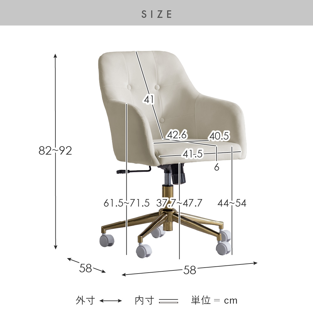 | サイズ | 約幅58×奥行き58×高さ82〜92cm |