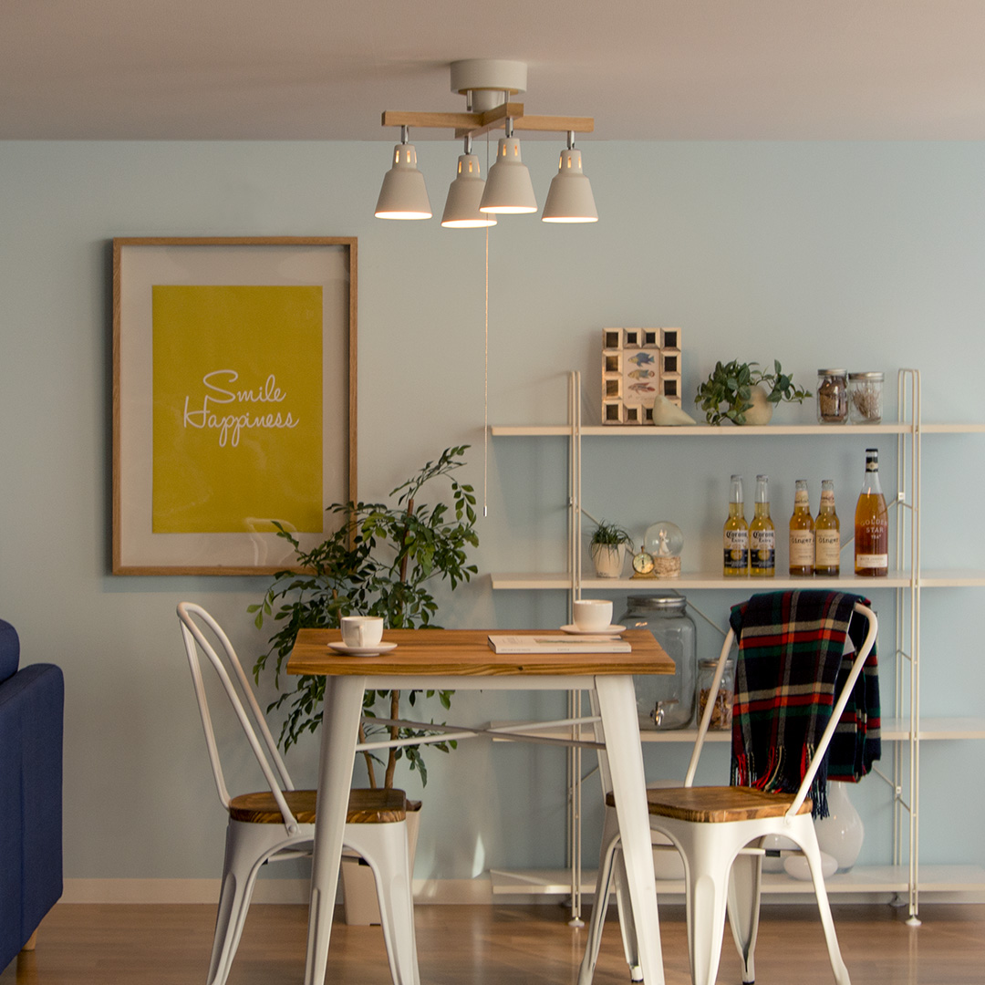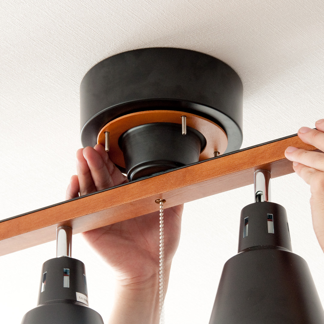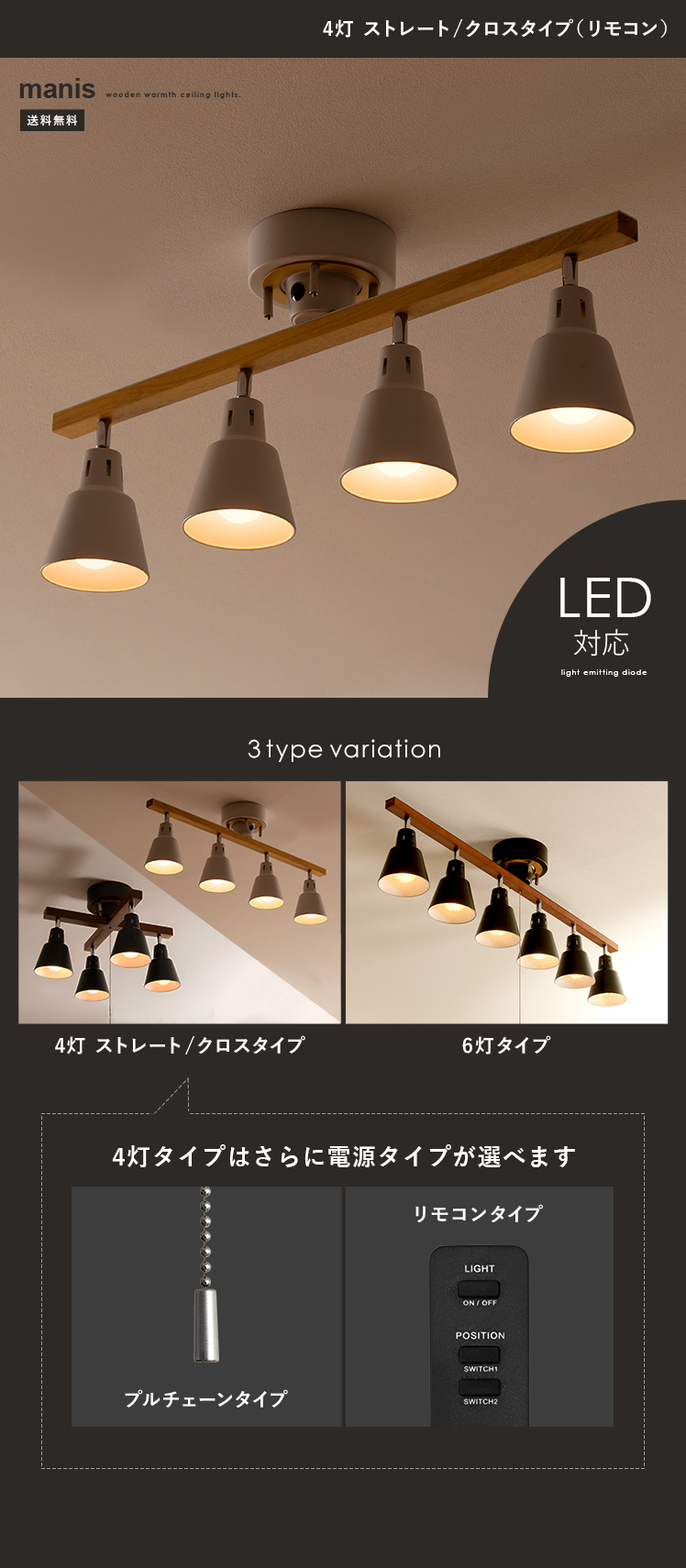 4灯シーリングライト manis〔マニス〕 リモコンタイプ/天然木を贅沢に使用し、既存の木製家具とも美しく調和。空間に統一感を生み、完成度の高いインテリアへ導きます。直線的で存在感のあるストレートと、まとまりあるクロスの2タイプ。カフェのような、温もりある空間づくりにおすすめです。