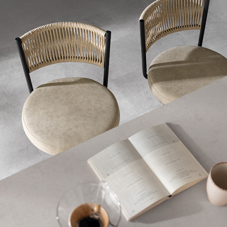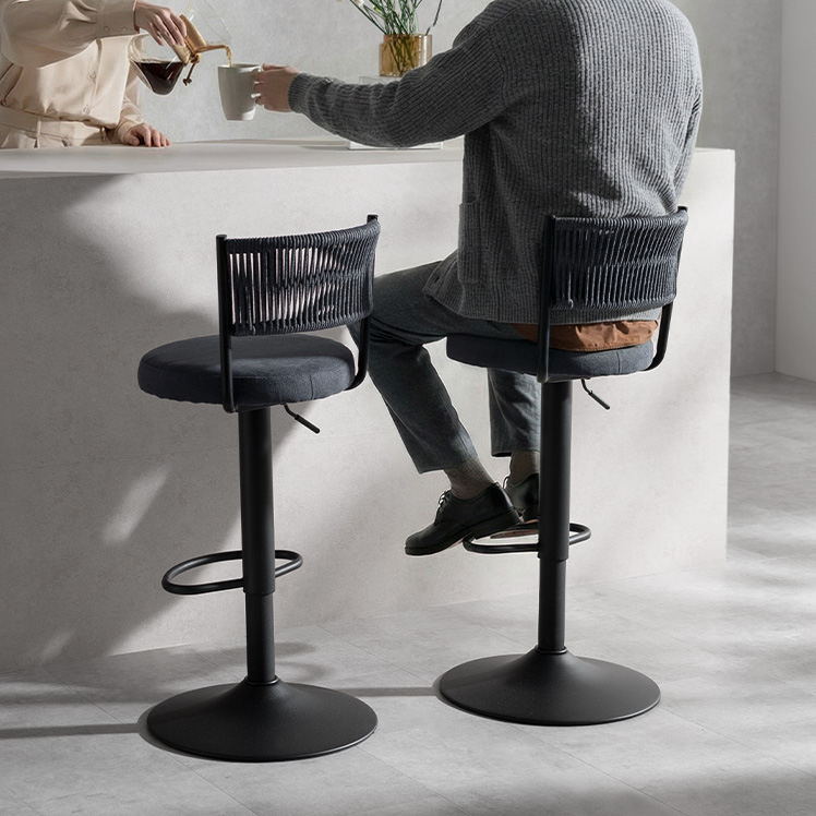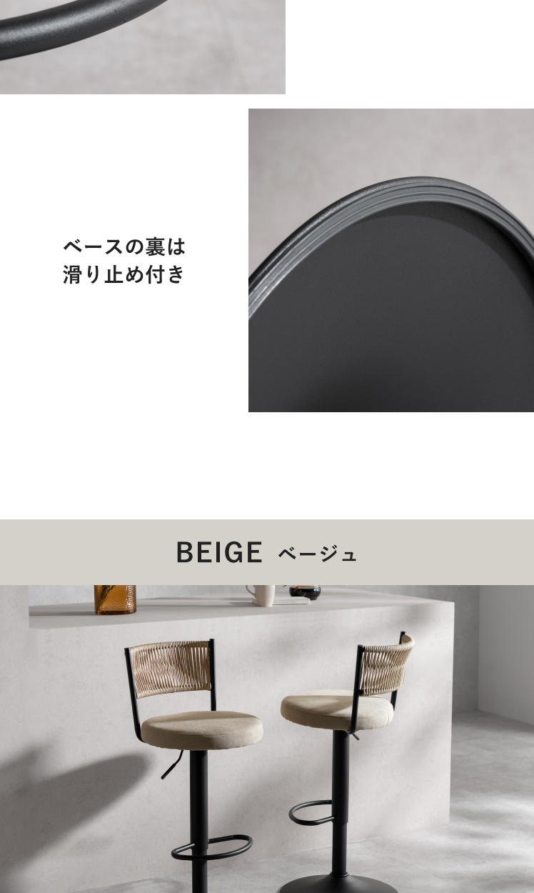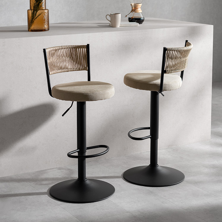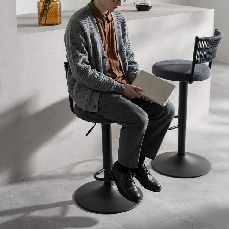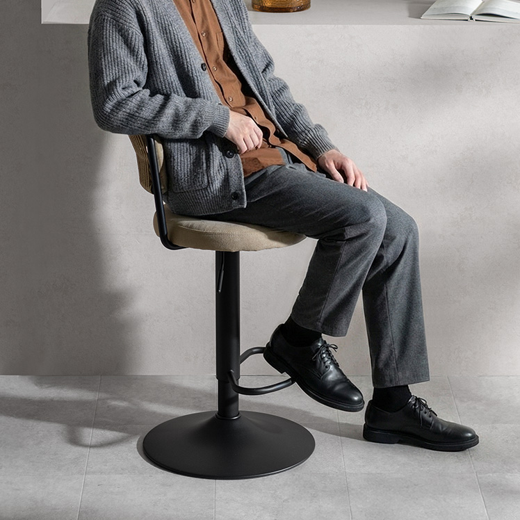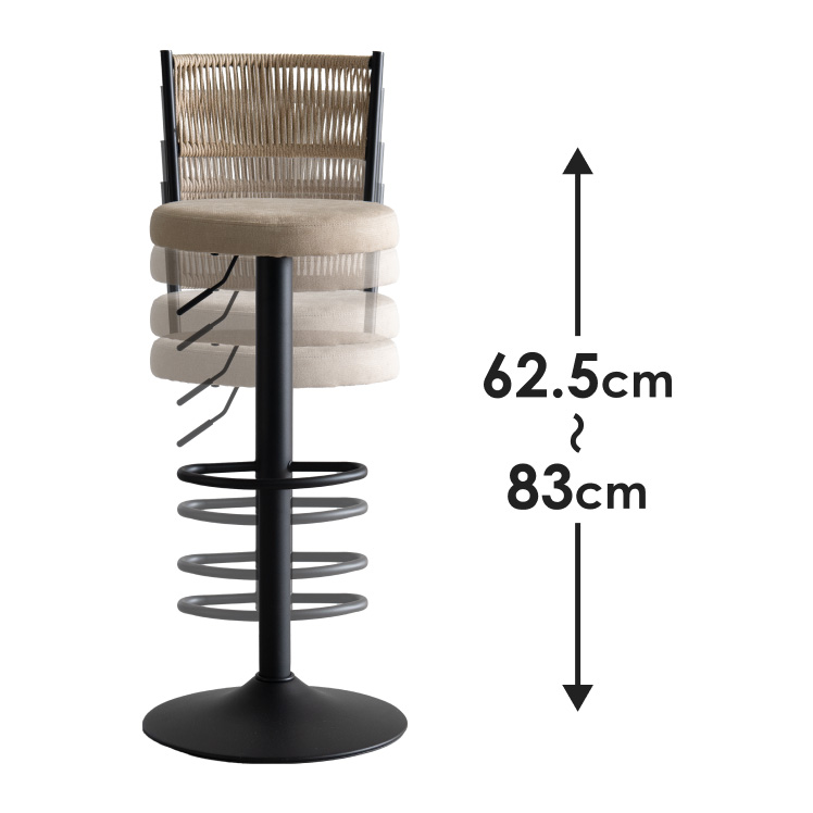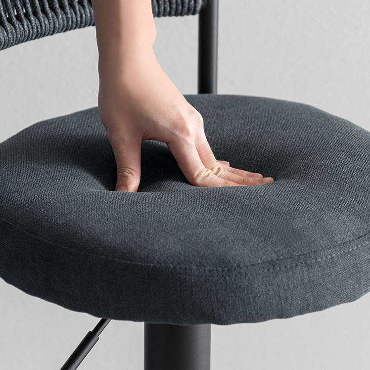 コード編みバーチェア NUDY〔ヌディ〕/やわらかな表情のペーパーコードの背もたれが目を惹く、ナチュラルモダンなバーチェア。ふかふかの座り心地と、360°回転・昇降機能で快適性もしっかり備えました。ご自宅のカウンターに洗練さと温もりをプラスします。