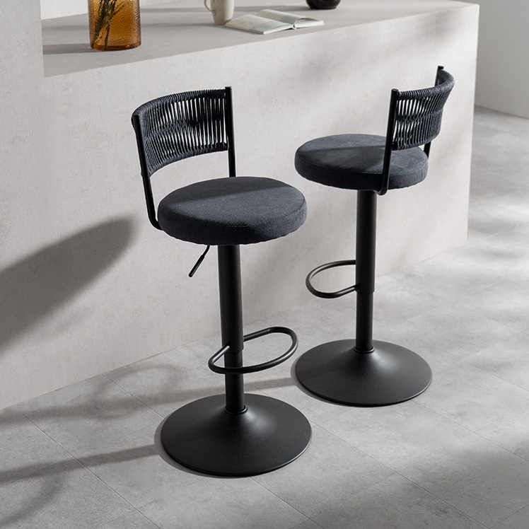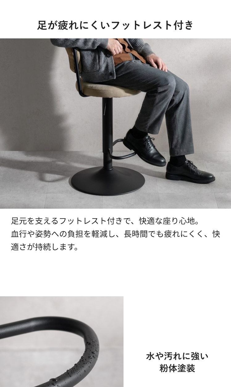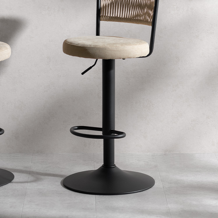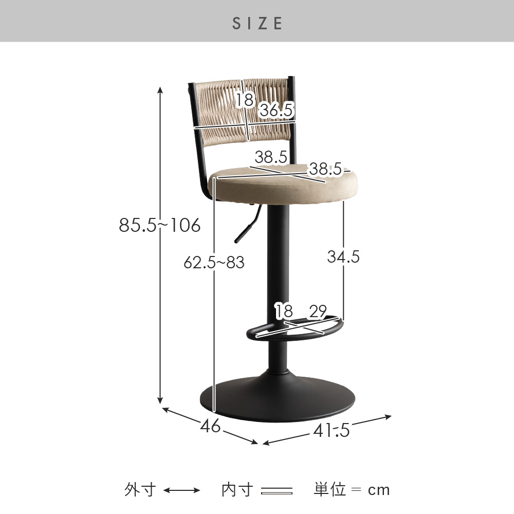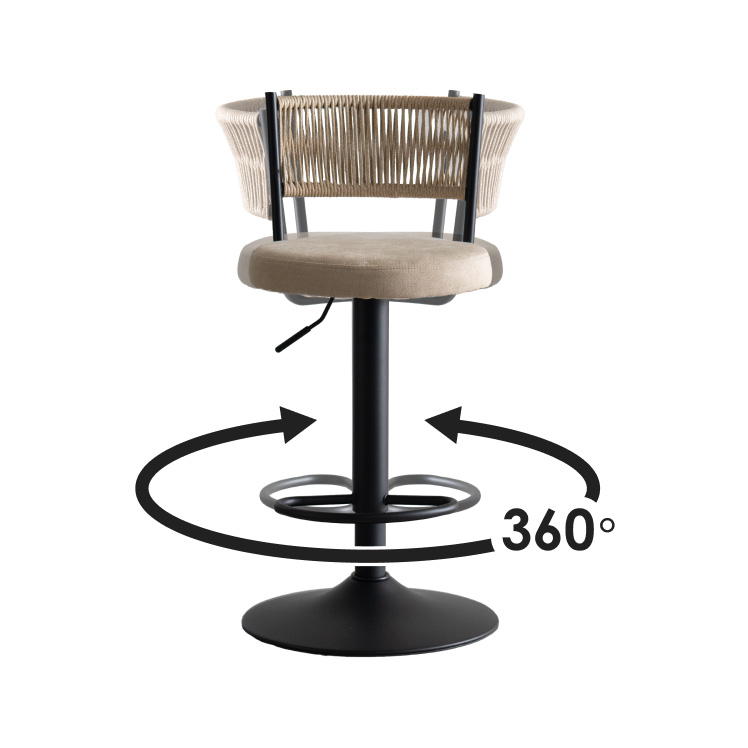 カウンターチェア バーチェア チェア ハイスツール コード編み おしゃれ シンプル 回転 ペーパーコード 昇降 椅子 背もたれ 背もたれ付き スツール 北欧 モダン 回転式 昇降式 ガス圧昇降 ファブリック 布 チェアー マット イス いす ふかふか ナチュラル スチール フットレスト付き ベージュ ダークグレー