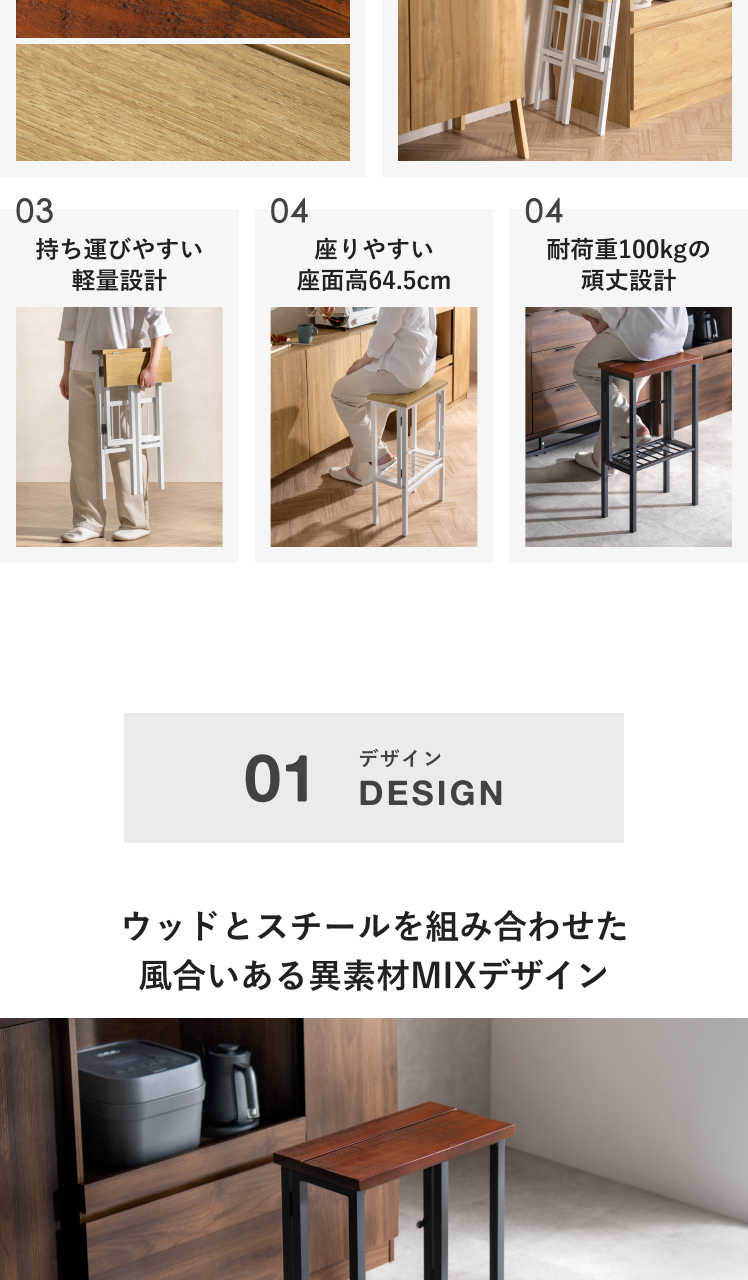 便利に使えるキッチン特化スツールでお料理の時間がもっと楽しく快適に。