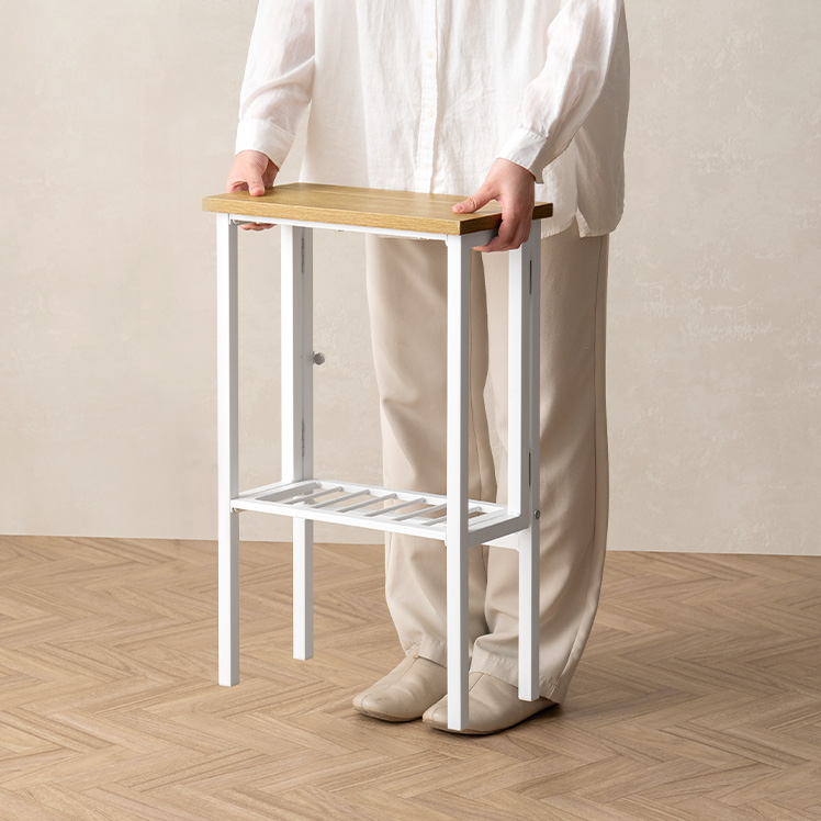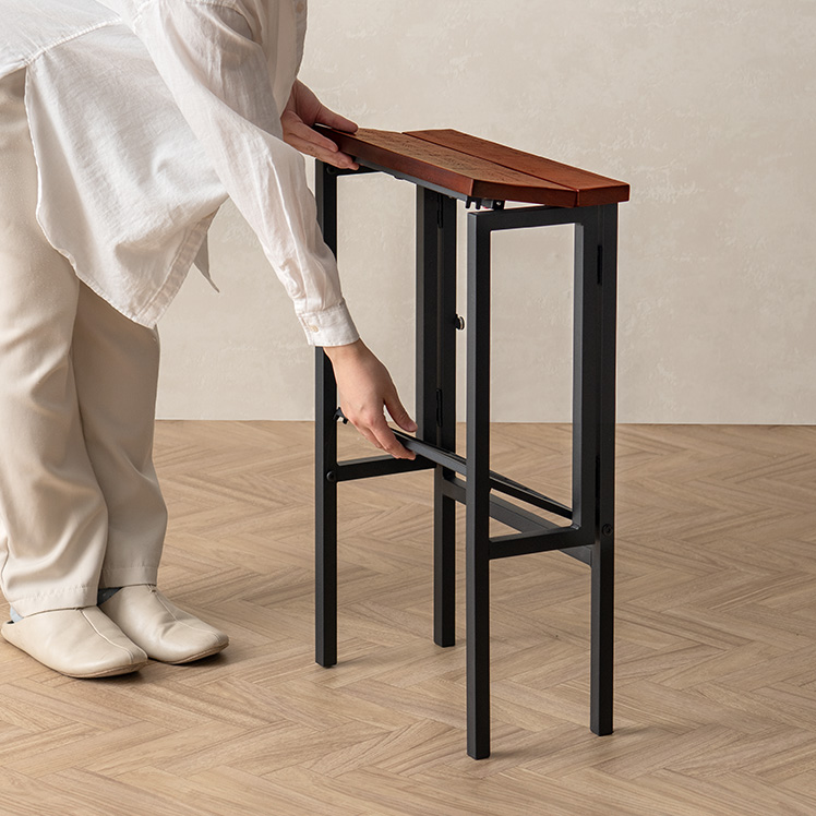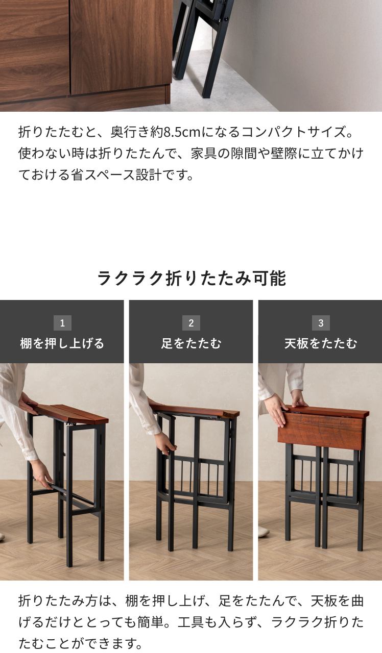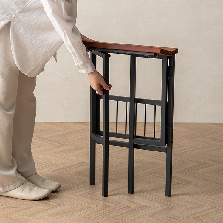 使わない時は折りたたんで、家具の隙間や壁際に立てかけておける省スペース設計です。