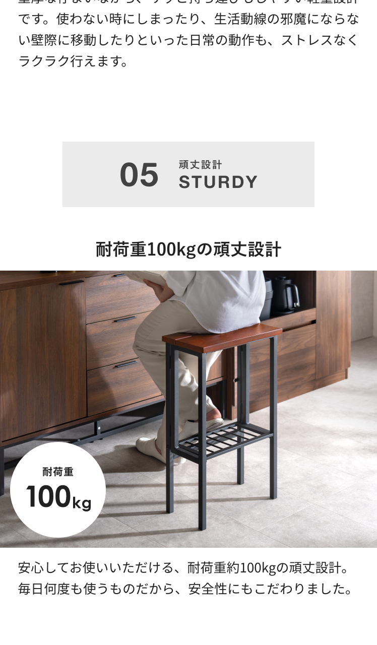 耐荷重100kgの頑丈設計