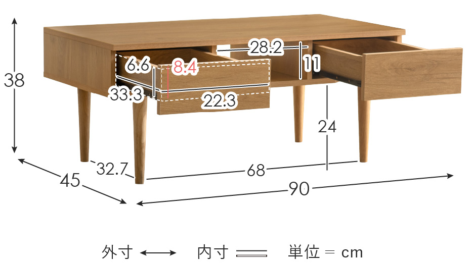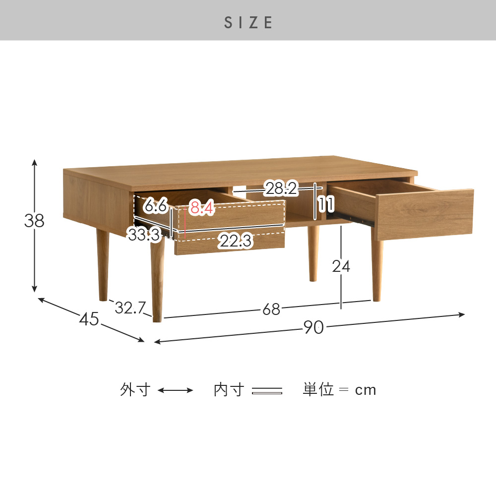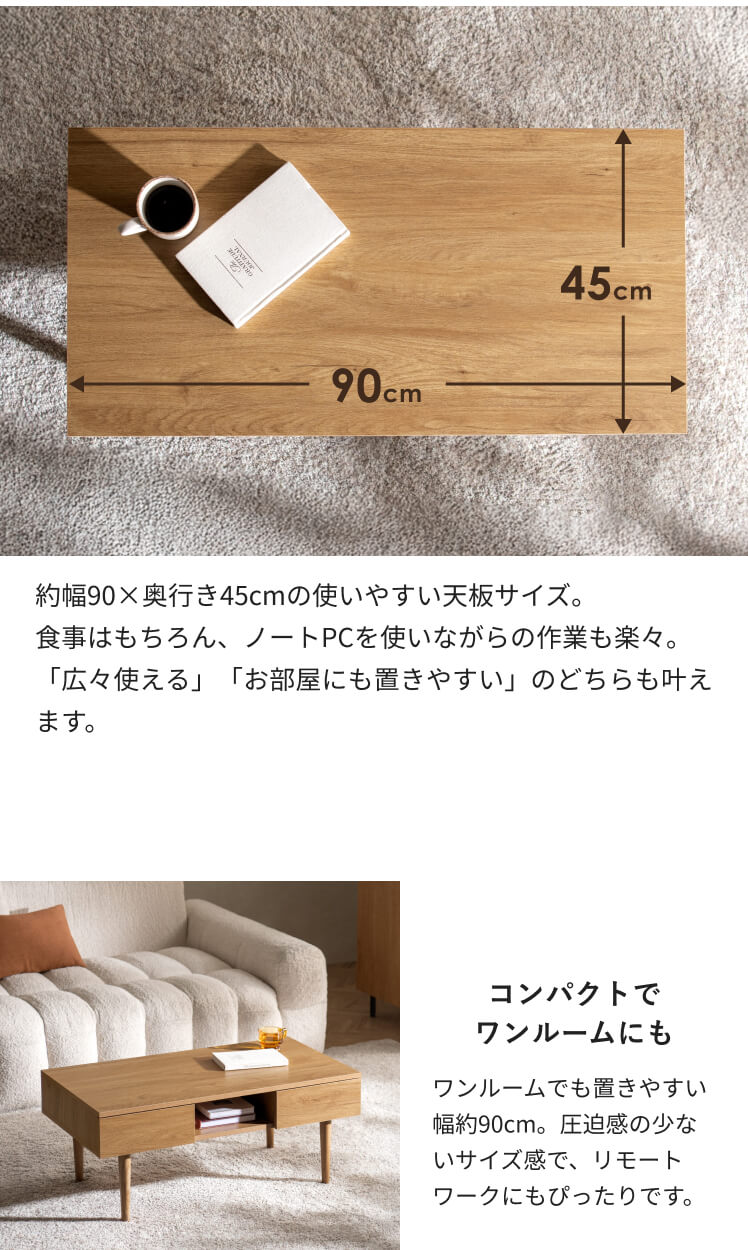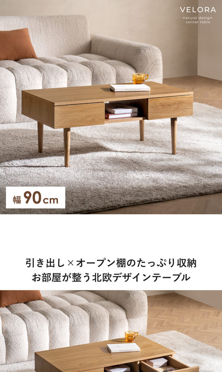 [幅90] 引き出し付きセンターテーブル Velora〔ヴェローラ〕