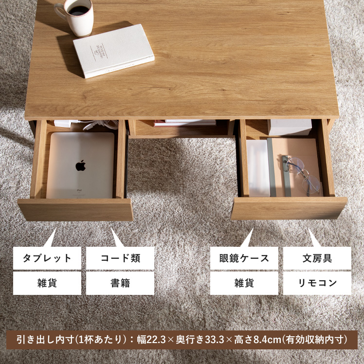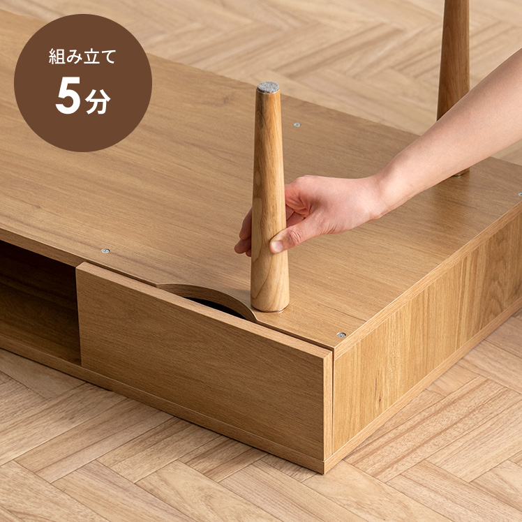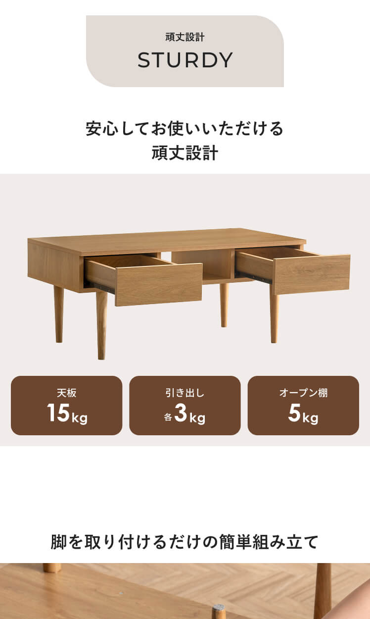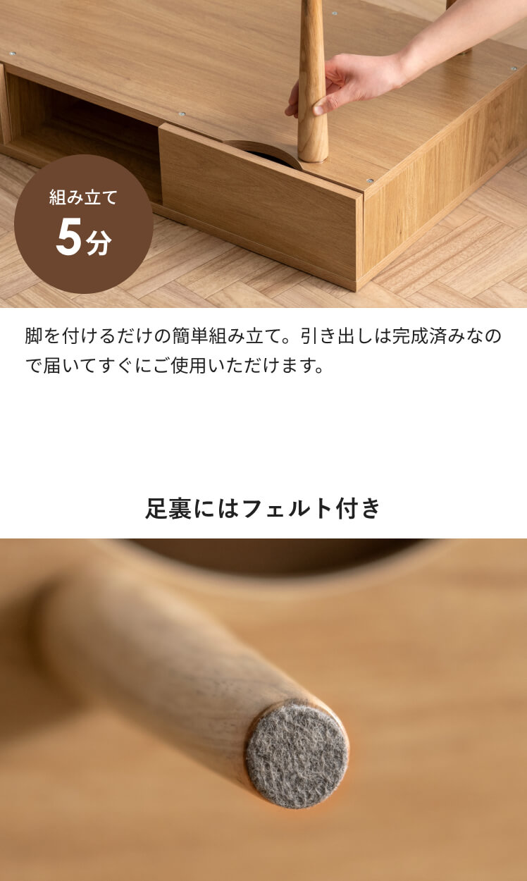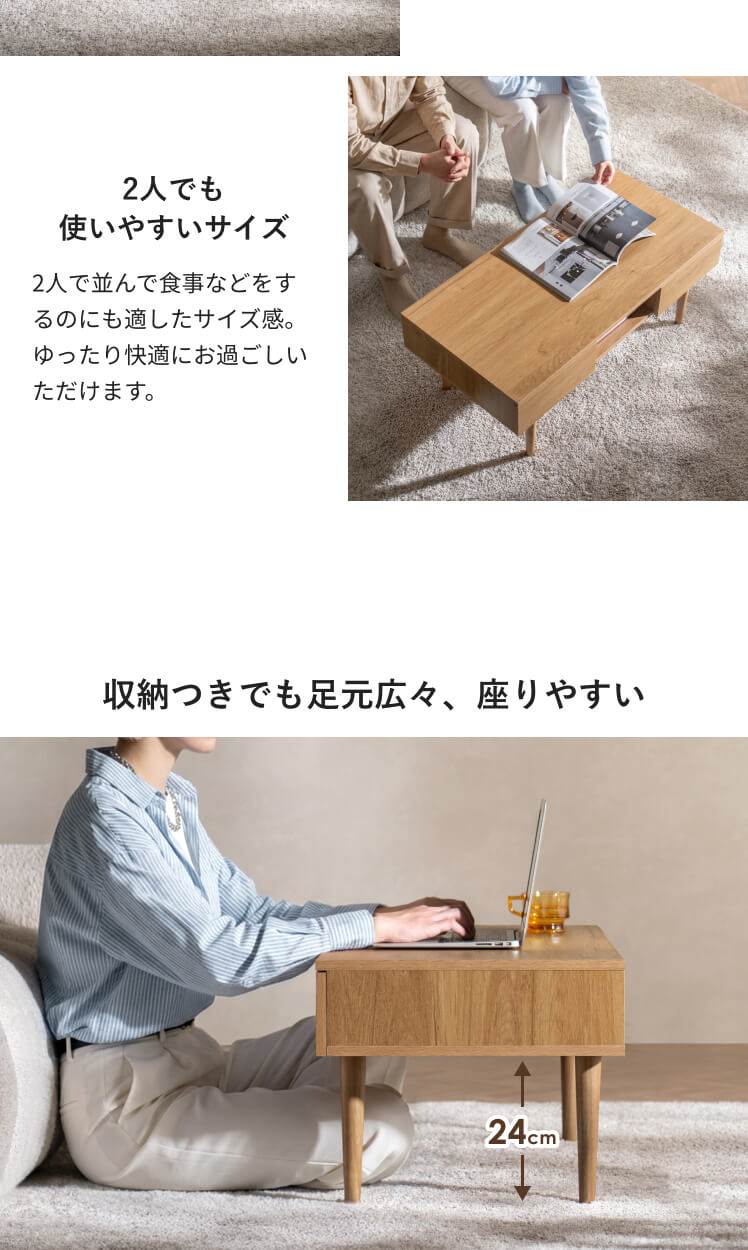 ローテーブル 引き出し収納 ウッド リビングテーブル 木製 天然木 ワンルーム 1人暮らし 組み立て簡単 ブラウン ナチュラル