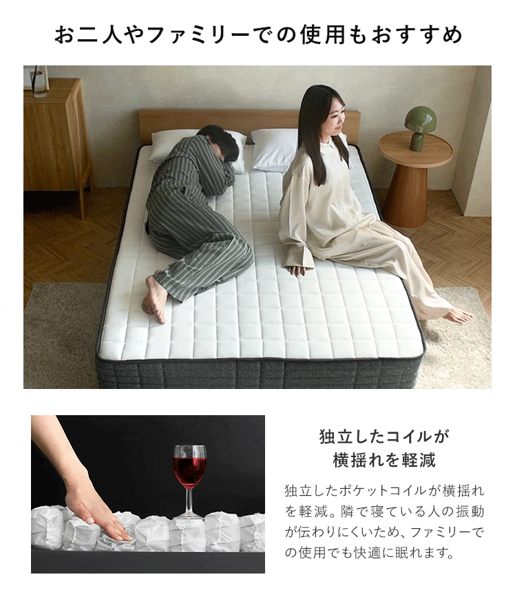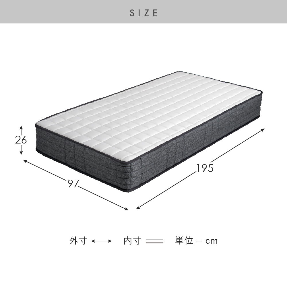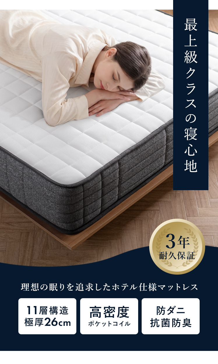 ポケットコイル マットレス ポケットコイルマットレス 高品質 極厚 26cm ホテル 高反発 消臭 抗菌 防臭 防ダニ フカフカ 熟睡 ホワイト 快眠 安眠 シンプル モダン 北欧 ナチュラル シングル