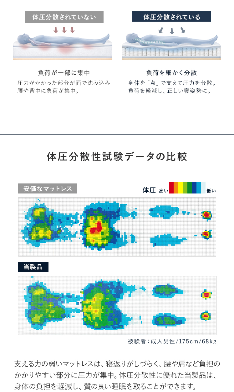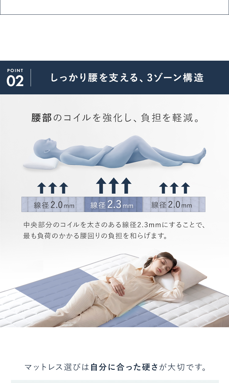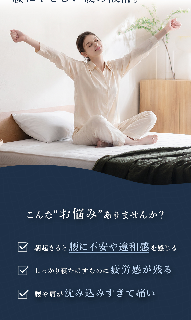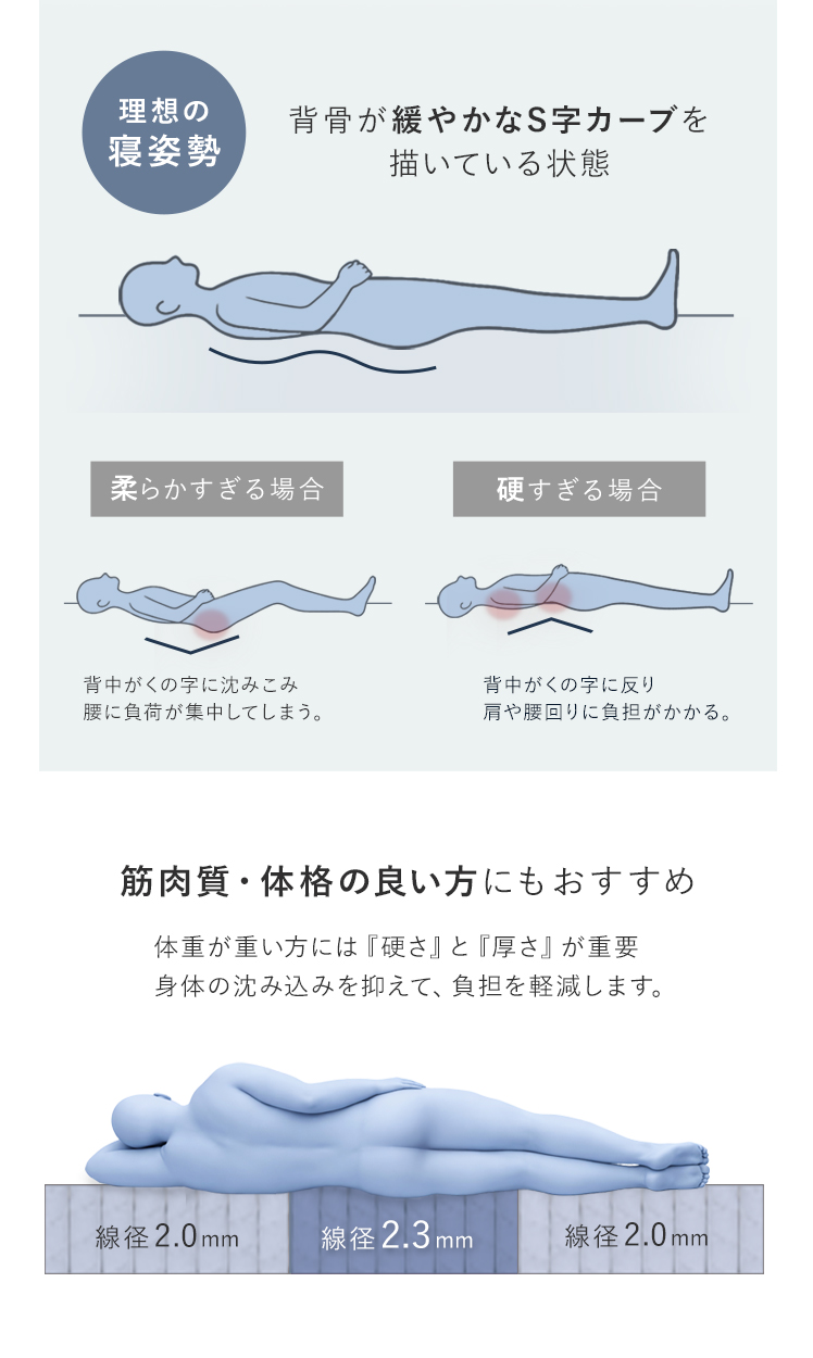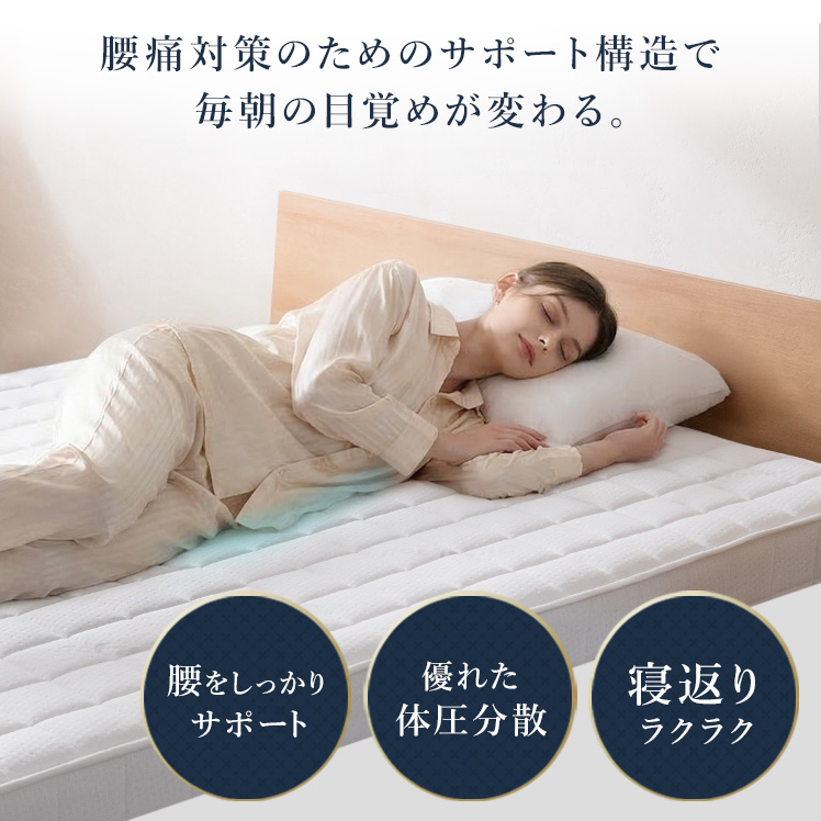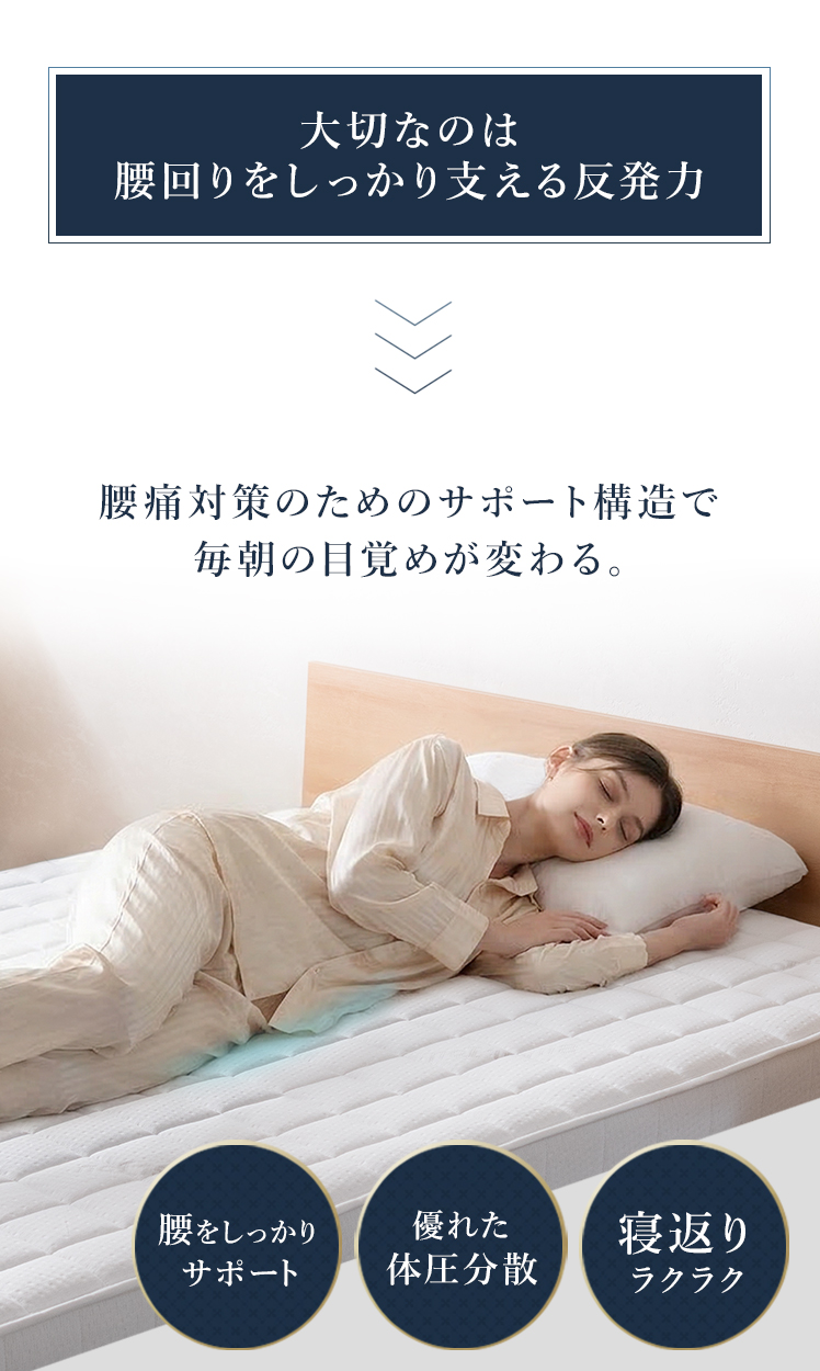高反発ハードマットレス COREA〔コレア〕 シングル/腰痛対策のためのこだわり構造のマットレス。腰をしっかりサポートするため、寝返りラクラク。毎朝の目覚めが変わります。