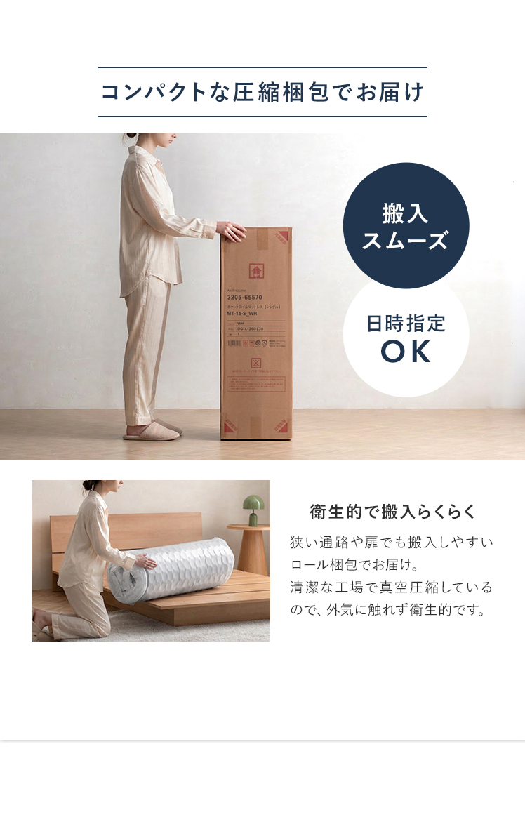 | 備考 | 完成品 真空圧縮ロール梱包 ※若干の個体差により、表記サイズと多少の差異が生じる場合がございます。 |