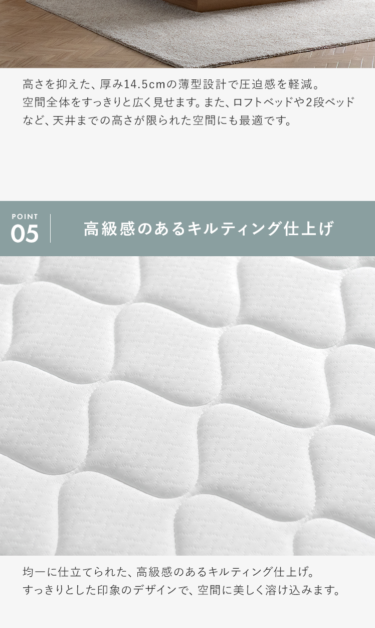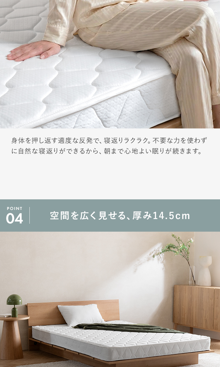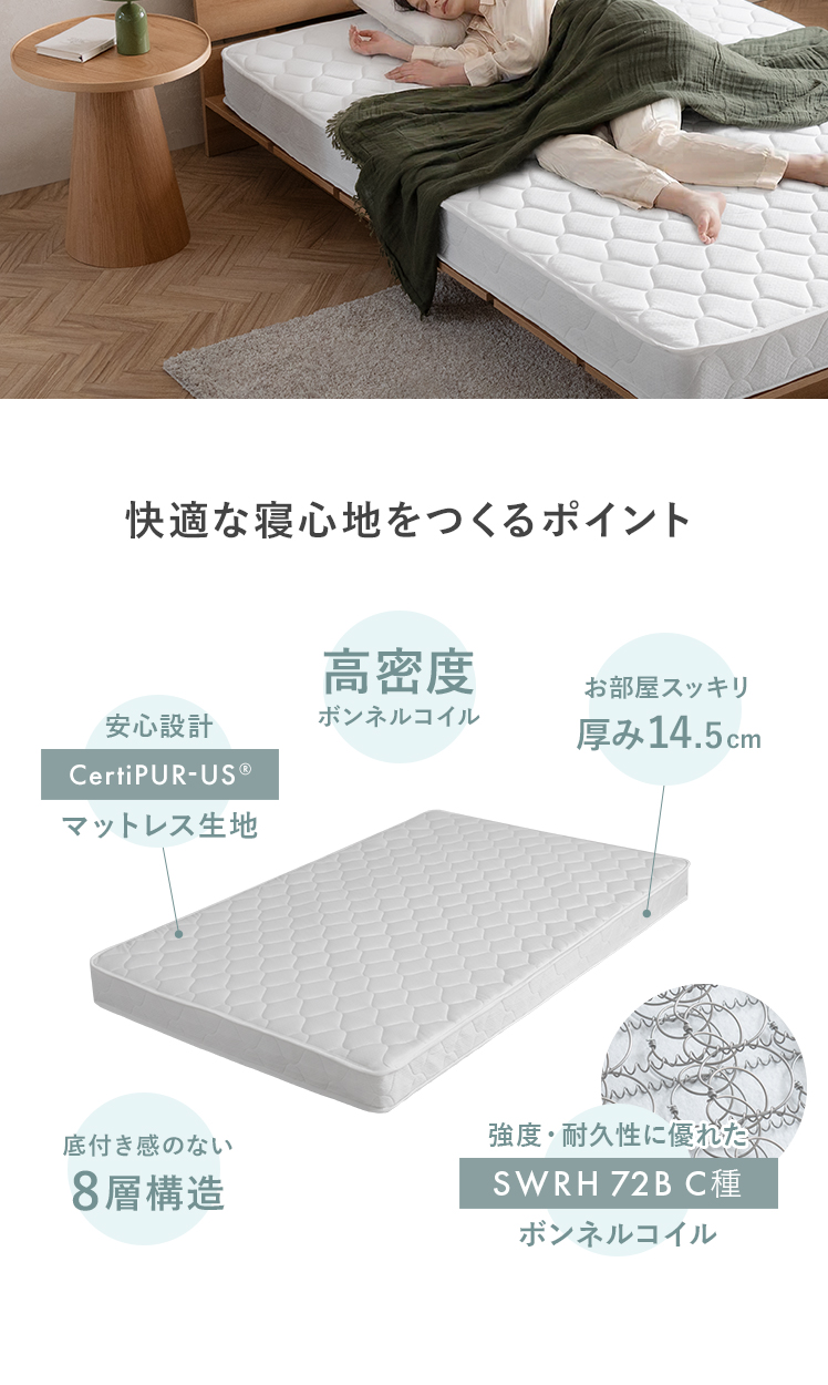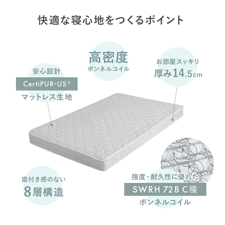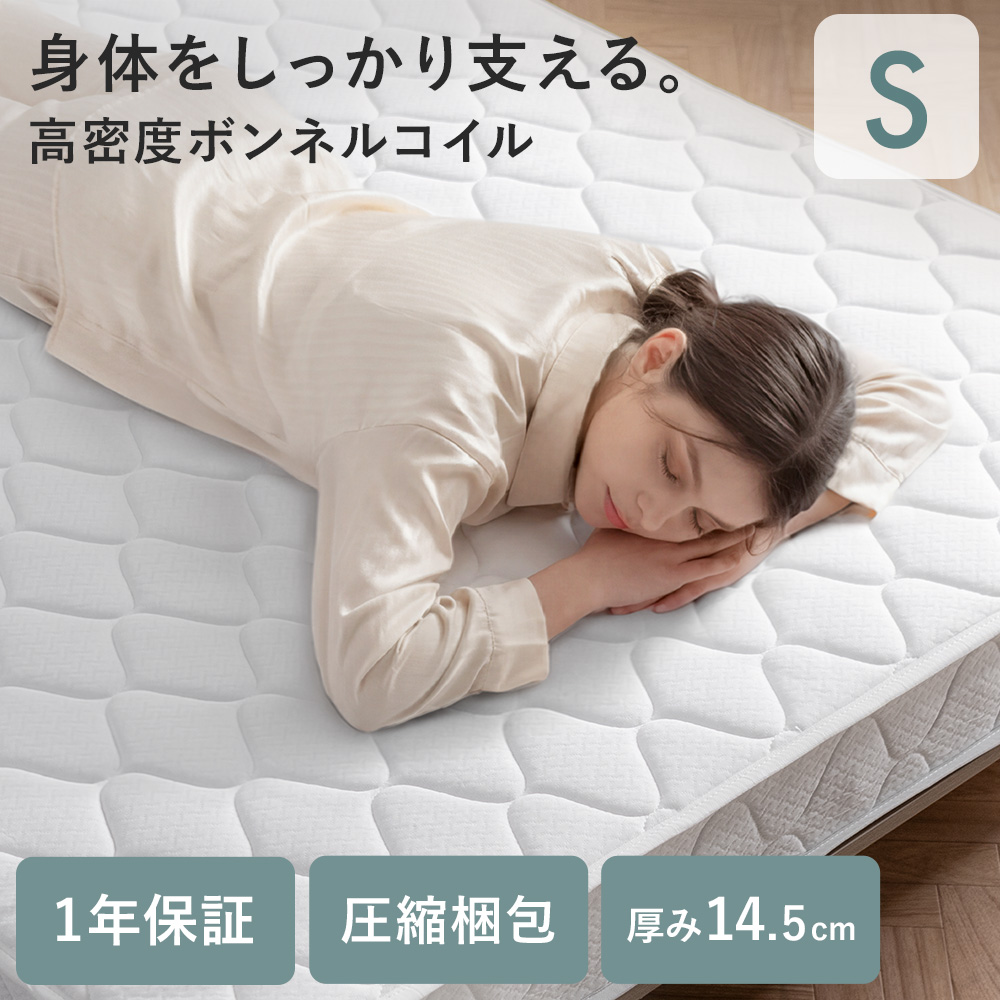 マットレス ボンネルコイル 高密度コイル 高反発 ニット生地 シングル マットレス 高品質 極厚 14.5cm ホテル 通気性 フカフカ 熟睡 ホワイト 快眠 安眠 コンパクト配送 シンプル モダン 北欧 ナチュラル