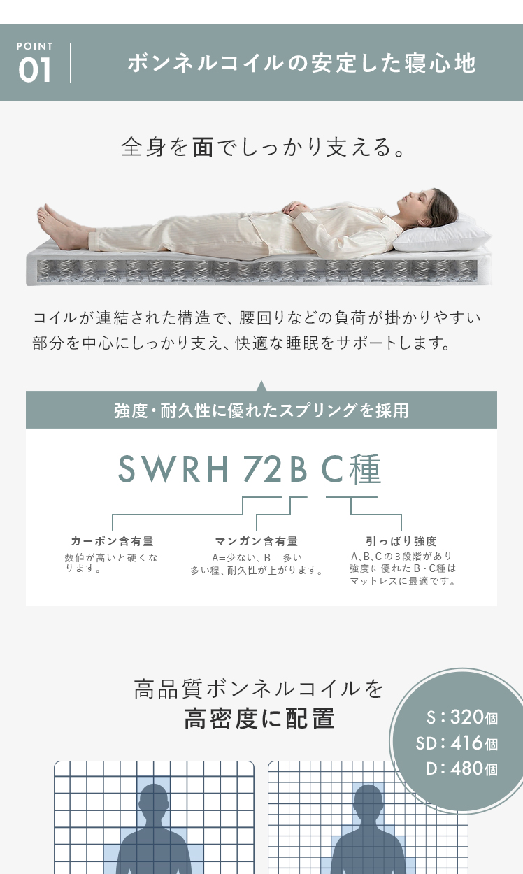 高密度ボンネルコイルマットレス Fina〔フィナ〕 シングル