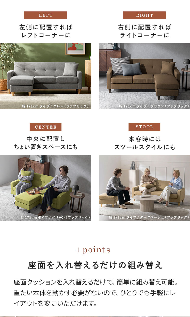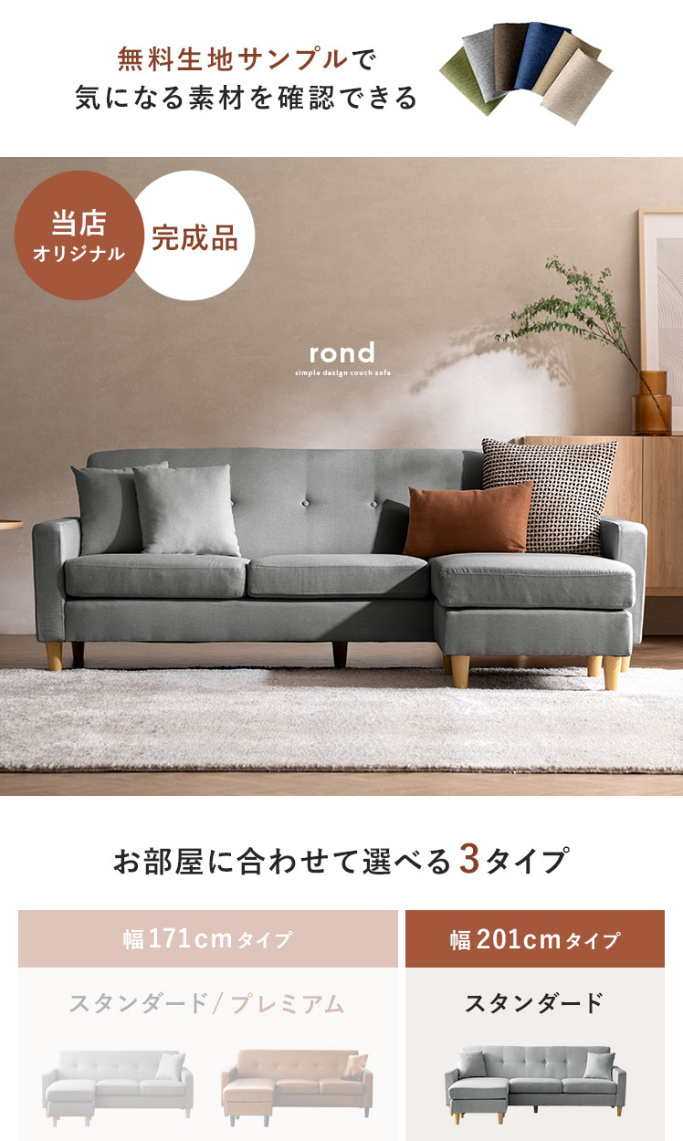 コーナー・カウチソファ rond(ロンド) 幅210cmタイプ