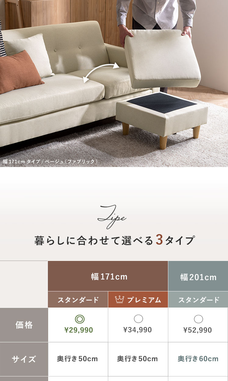 | サイズ | ソファ/約幅201×奥行き85×高さ75cm スツール/約幅60×奥行き60×高さ40cm |