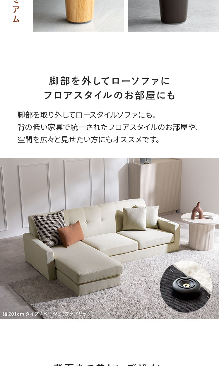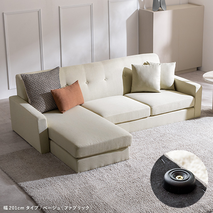 ソファ 幅201 クッション付き 布 ファブリック レザー カウチソファ ローソファ L字ソファ 切り離し可能 組み換え 3人掛け 北欧モダン おしゃれ ゆったり シンプル オットマン 極厚ウレタン コーナーソファ ベージュ グレー レザーブラウン