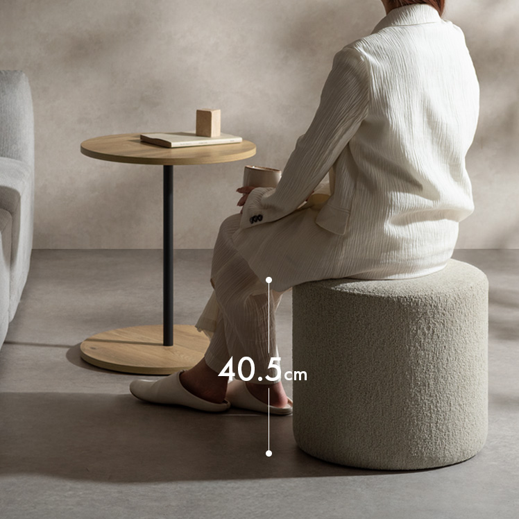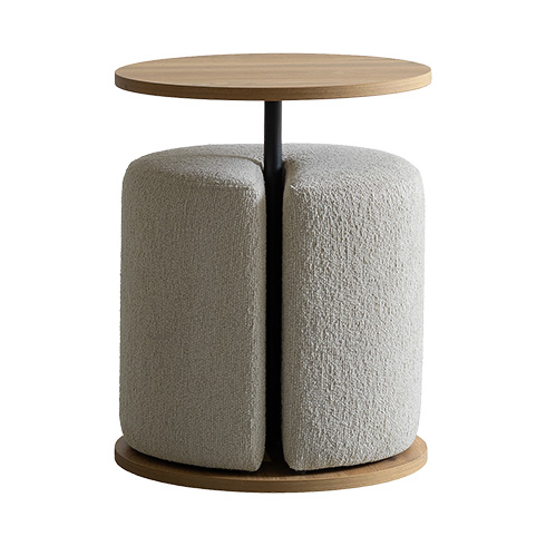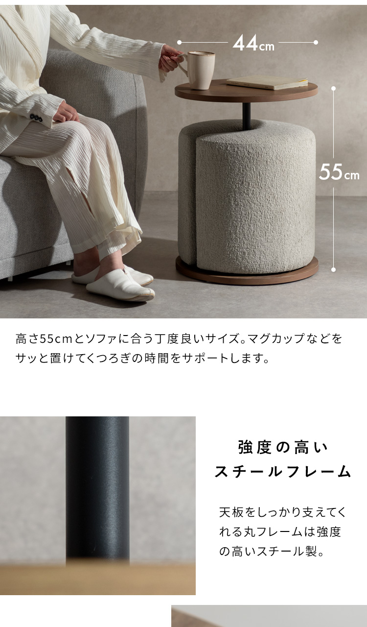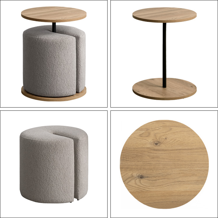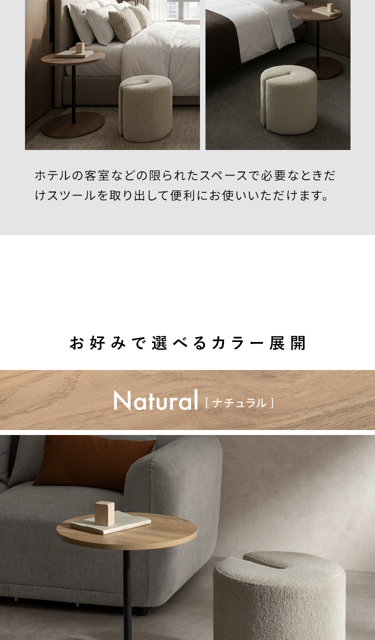 Brand / Signature Studio テーブル スツールセット ラウンドサイドテーブル 木目柄 円形 モダン おしゃれ ラウンド天板 ベッドサイドテーブル ソファサイドテーブル シンプル イス付き ブークレ生地 ホテルライク スタイリッシュ ナイトテーブル ナチュラル ブラウン ベージュ 宮武製作所 シグスタ