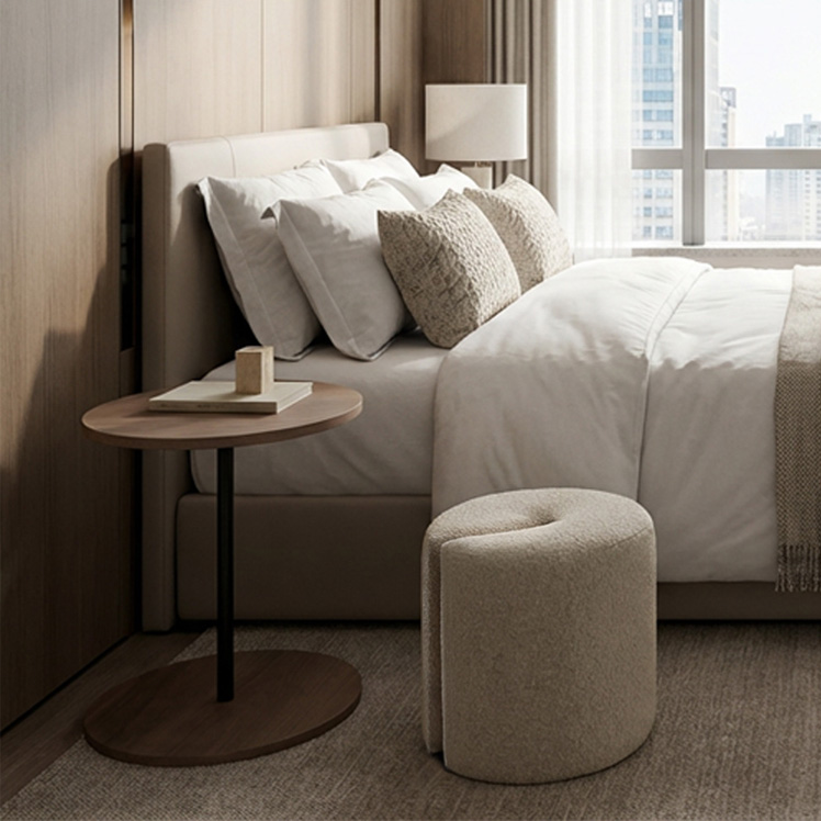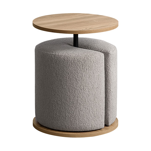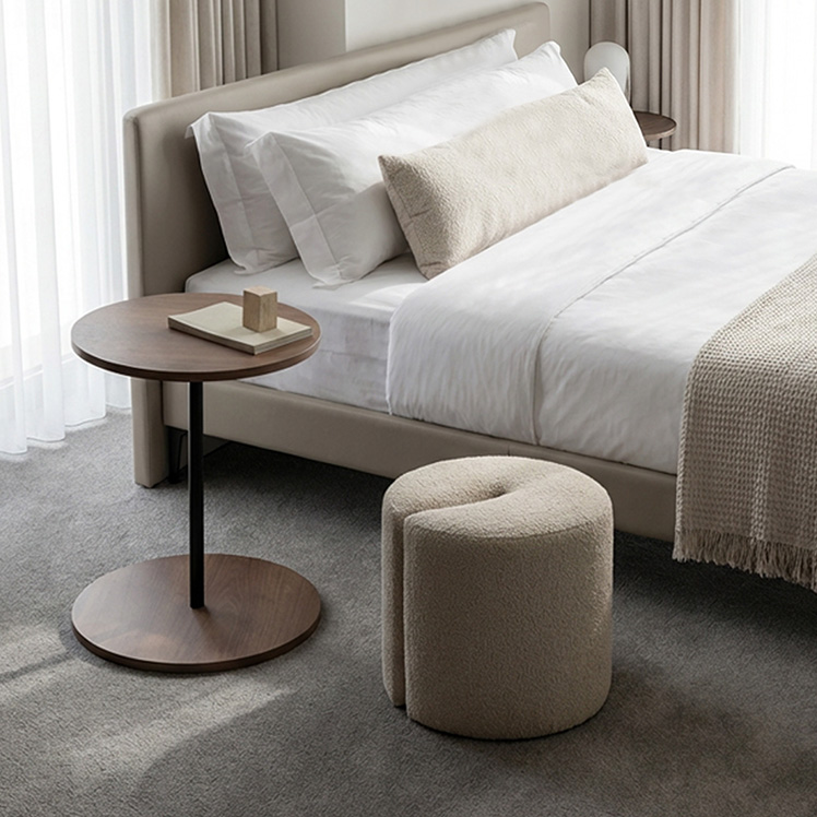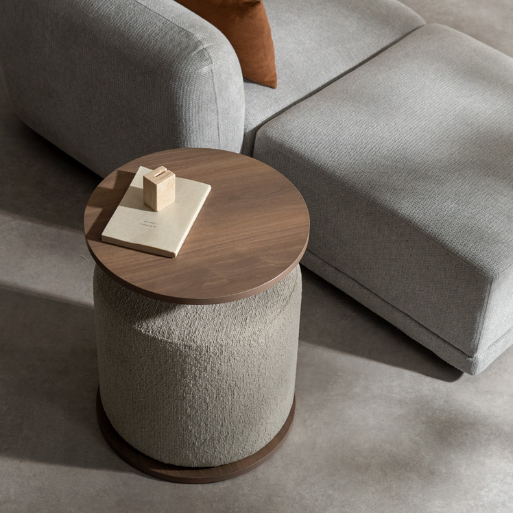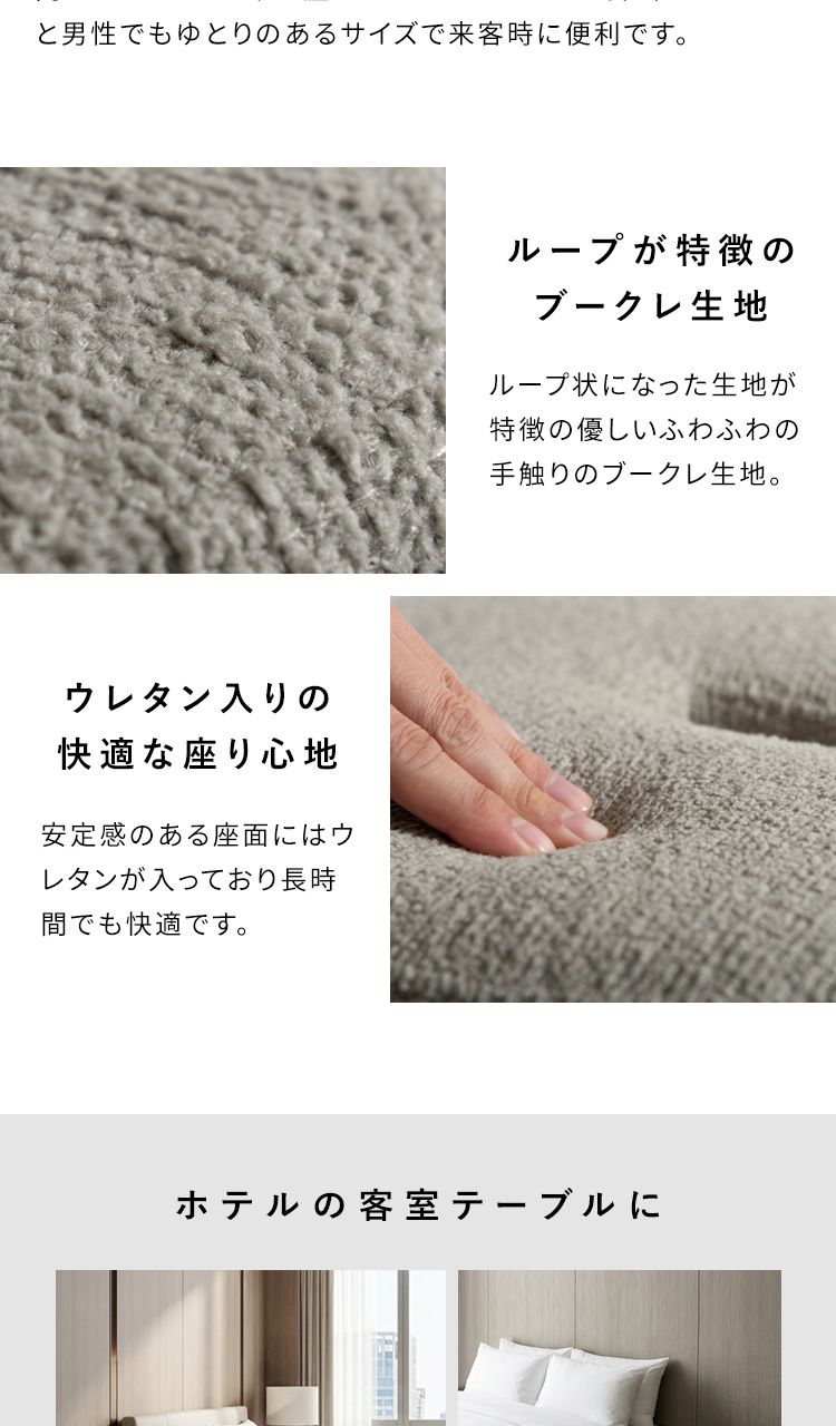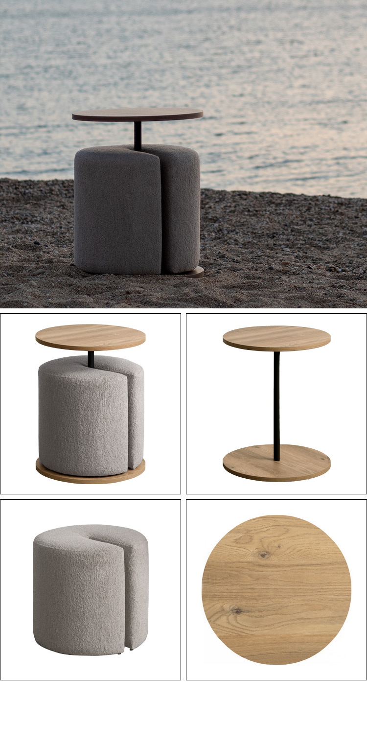 Brand / Signature Studio テーブル スツールセット ラウンドサイドテーブル 木目柄 円形 モダン おしゃれ ラウンド天板 ベッドサイドテーブル ソファサイドテーブル シンプル イス付き ブークレ生地 ホテルライク スタイリッシュ ナイトテーブル ナチュラル ブラウン ベージュ 宮武製作所 シグスタ