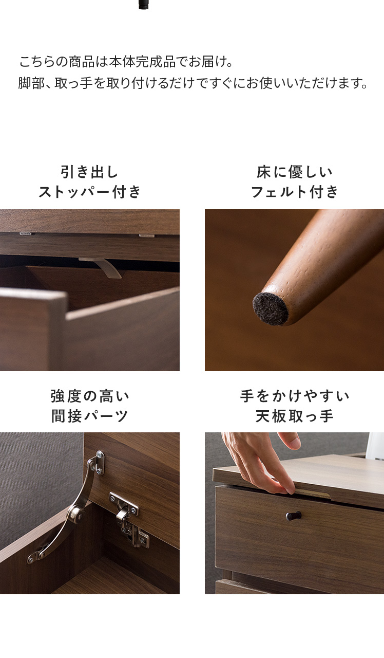 | 備考 | 本体完成品(脚部・取っ手のみ取付) ※若干の個体差により、表記サイズと多少の差異が生じる場合がございます。 ※要プラスドライバー |