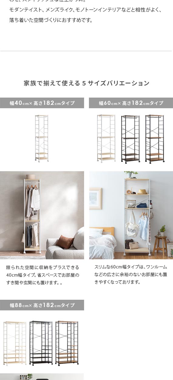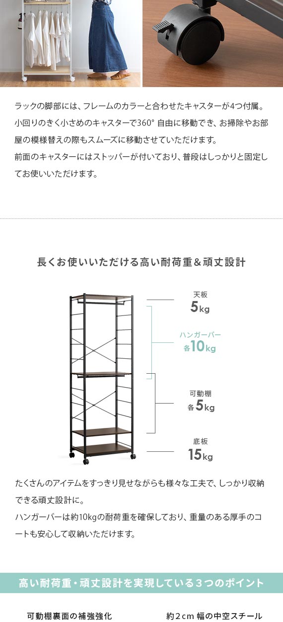 使う方の身長に合わせた高さ調整もできるので、お子様用の衣類収納としてもおすすめです。