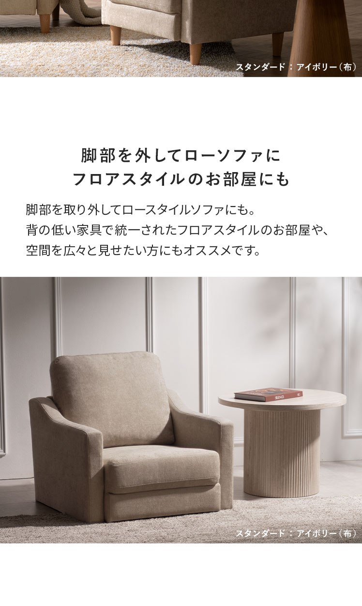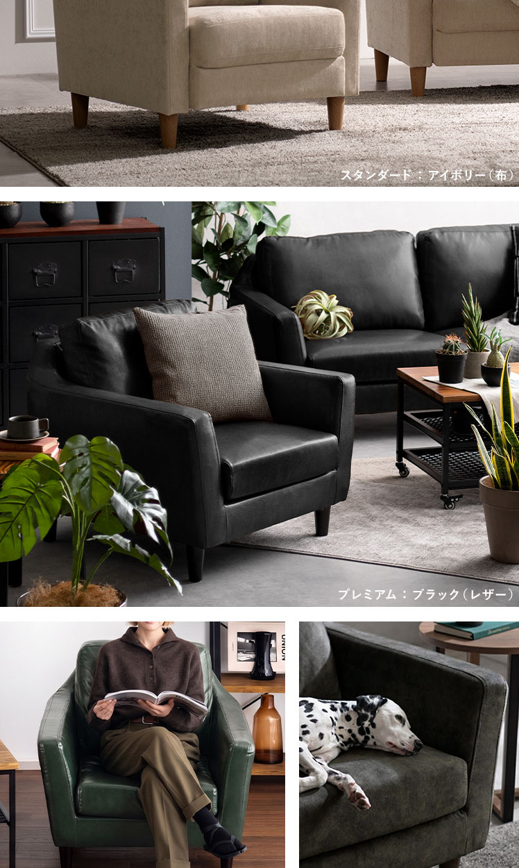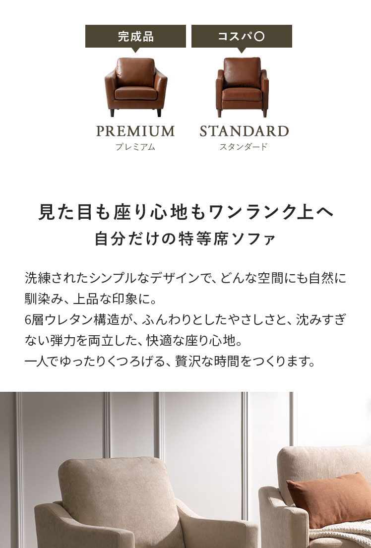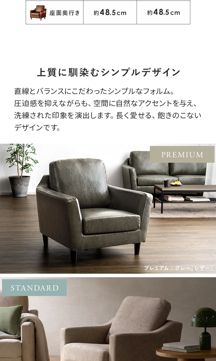 贅沢な座り心地を独り占めできるすっきりシンプルな1Pソファ。シリーズ展開豊富で組み合わせ次第で多彩なスタイルが楽しめます。どんなインテリアにも馴染む、すっきりとしたシンプルデザインとカラーバリエーションも魅力です。