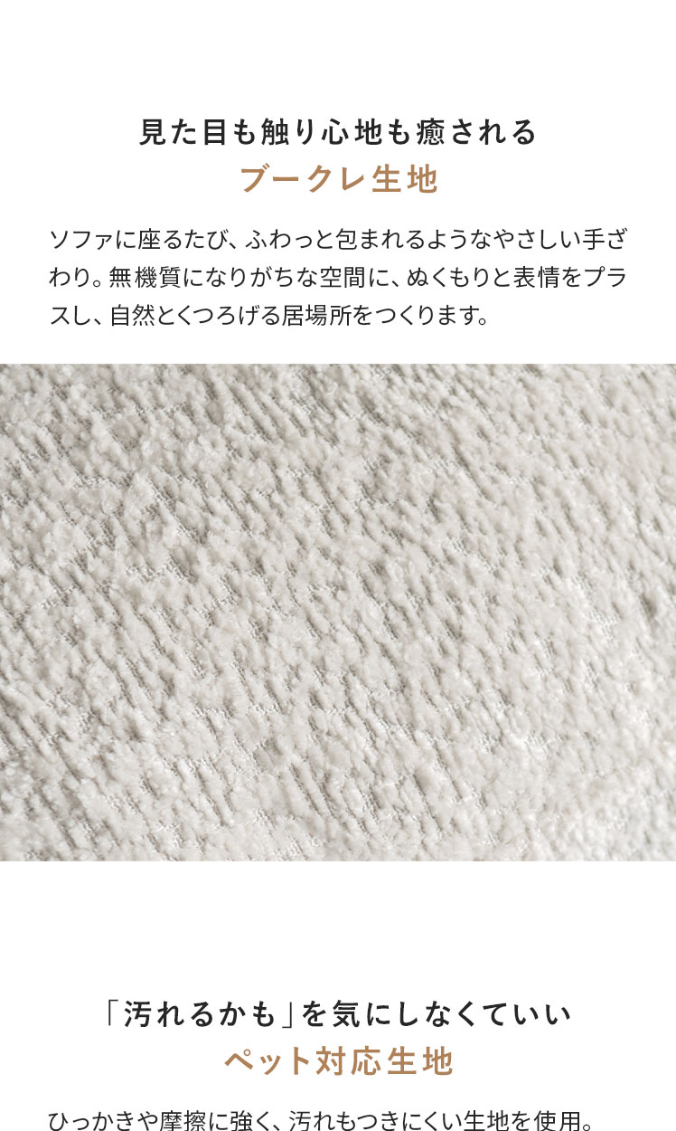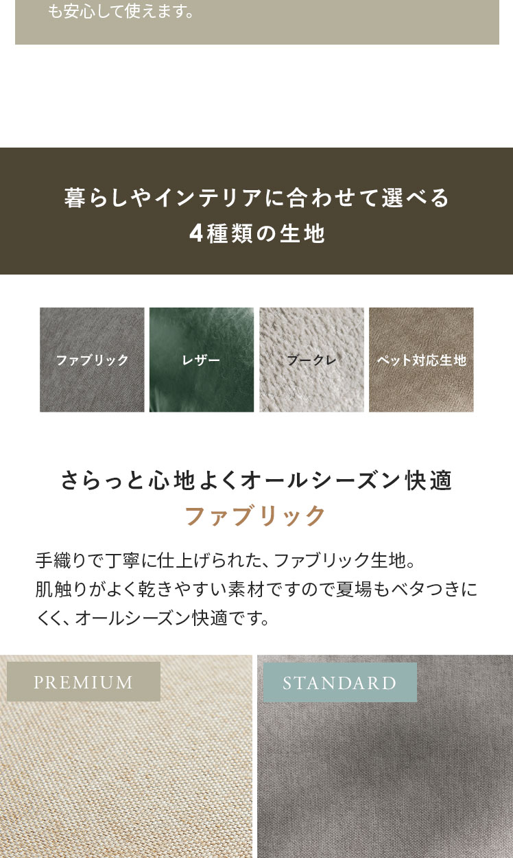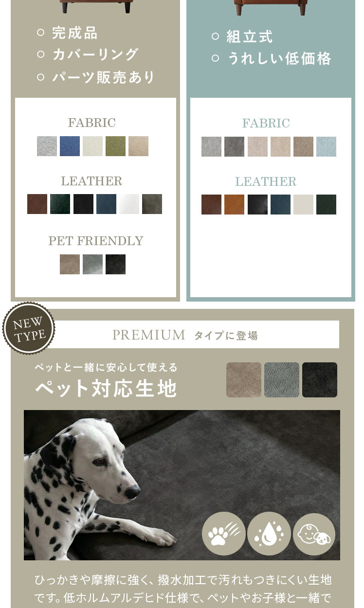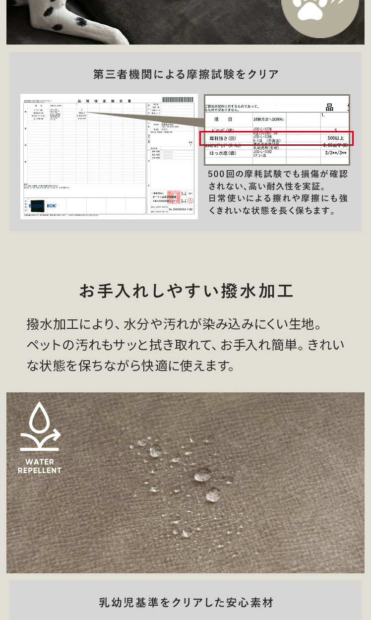 | 張地 | ファブリック/ポリエステル レザー/合成皮革(PVC)、ペット対応生地/ポリエステル |