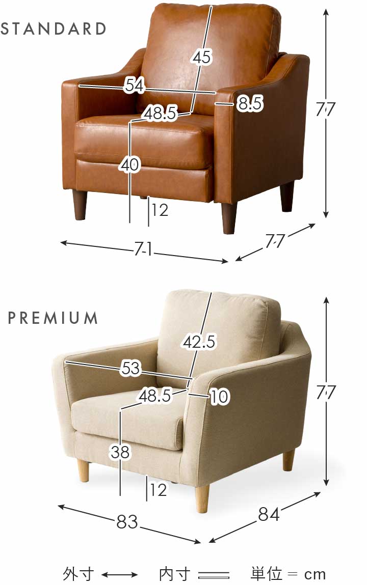 | サイズ | スタンダード/約幅71×奥行き77×高さ77cm プレミアム/約幅83×奥行き84×高さ77cm |
