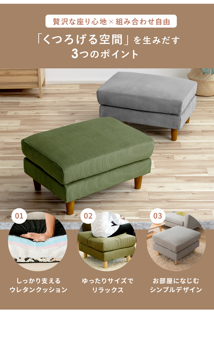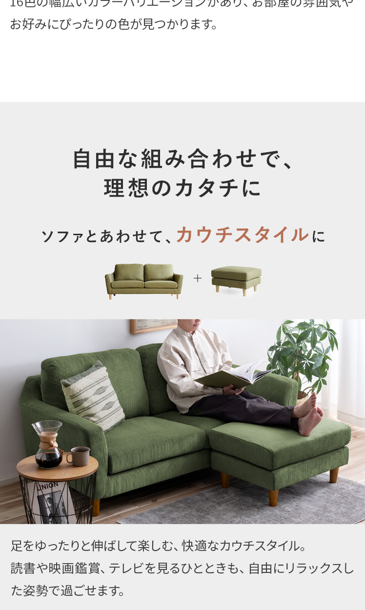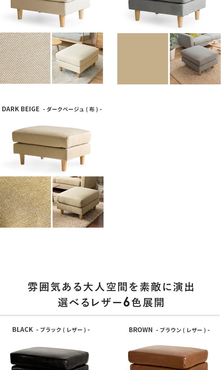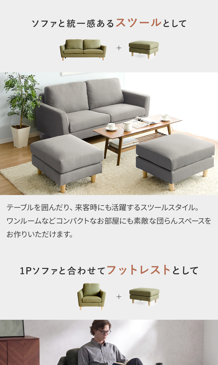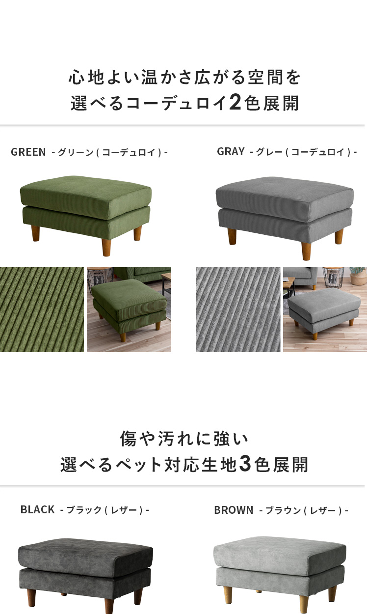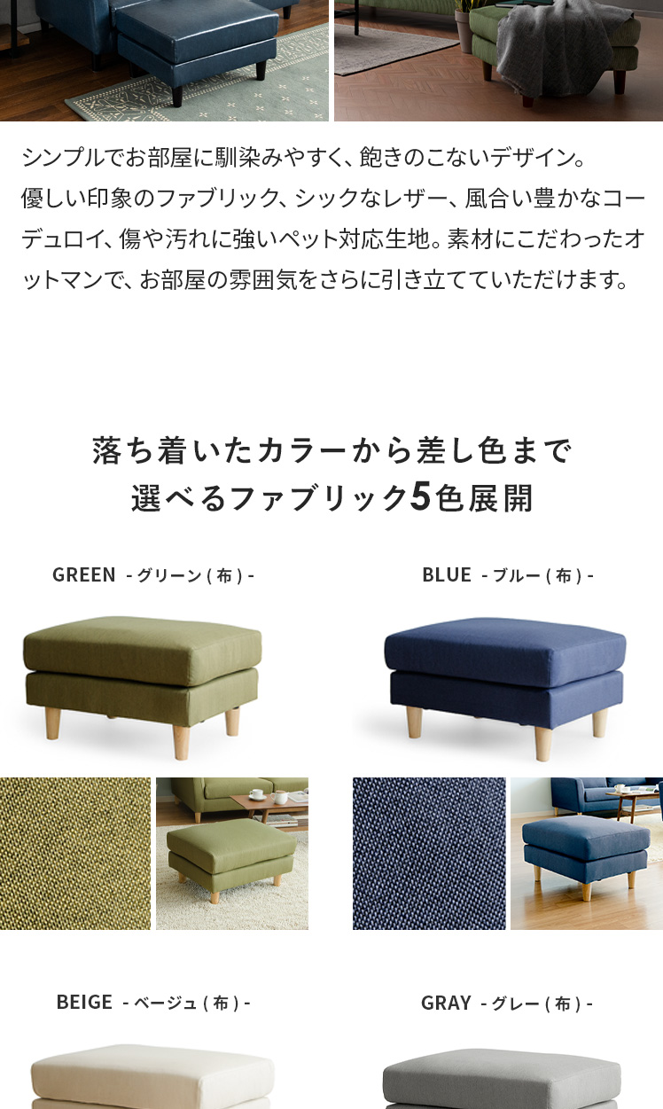 オットマン LAURU(ラウル) ペット対応生地タイプ/シンプルで合わせやすい定番デザインと上質な座り心地で人気のソファ”LAURU”から待望のオットマンが登場♪座面の高さや幅もソファシリーズと合うように設計されておりますので、オットマンをソファとぴったり繋げて使用して頂けます。合わせ方次第で、ソファベッド風や、カウチソファ風など幅広いスタイルをお楽しみいただけます。ソファシリーズと合わせた選べる9色の豊富なカラーバリエーションに、質感の良い天然木脚部を合わせた、見た目のデザイン性も目を惹くオットマンとなっております。お気に入りのくつろぎ空間に、くつろぎスタイルの幅を広げるLAURUオットマンをプラス♪快適性のアップしたワンランク上のリビングづくりを。