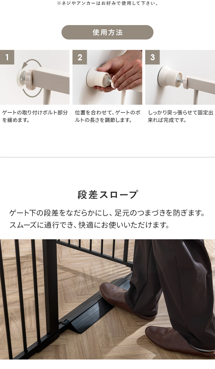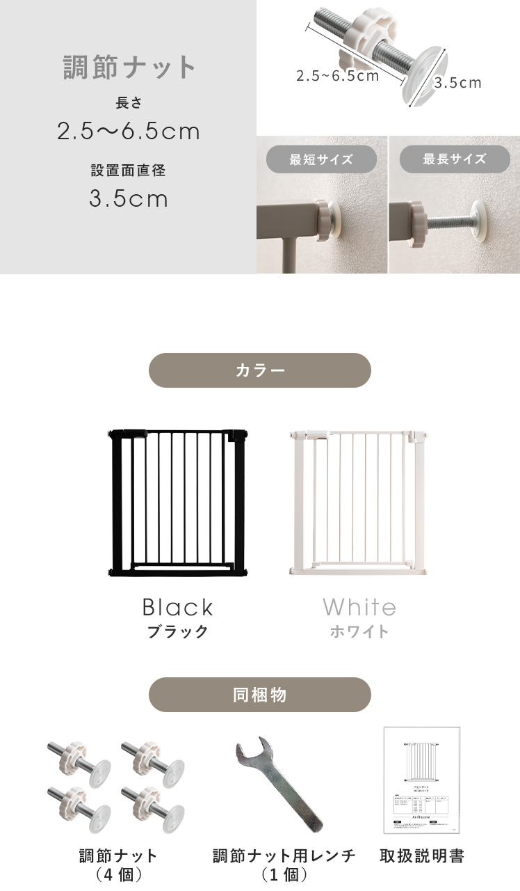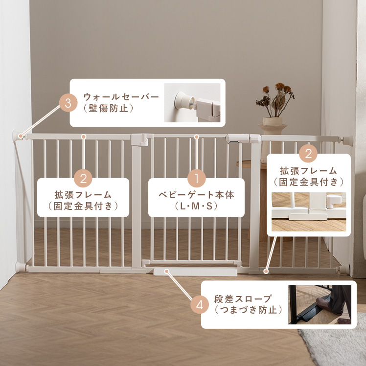 | ベビーゲート本体(製品重量) | S/約4.2kg M/約4.5kg L/約4.8kg |
