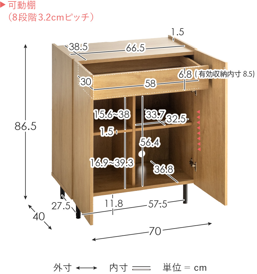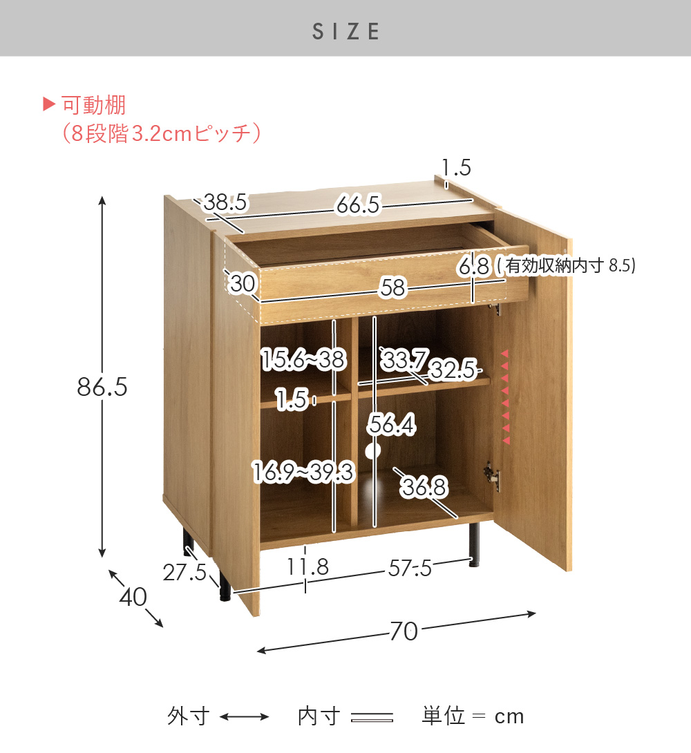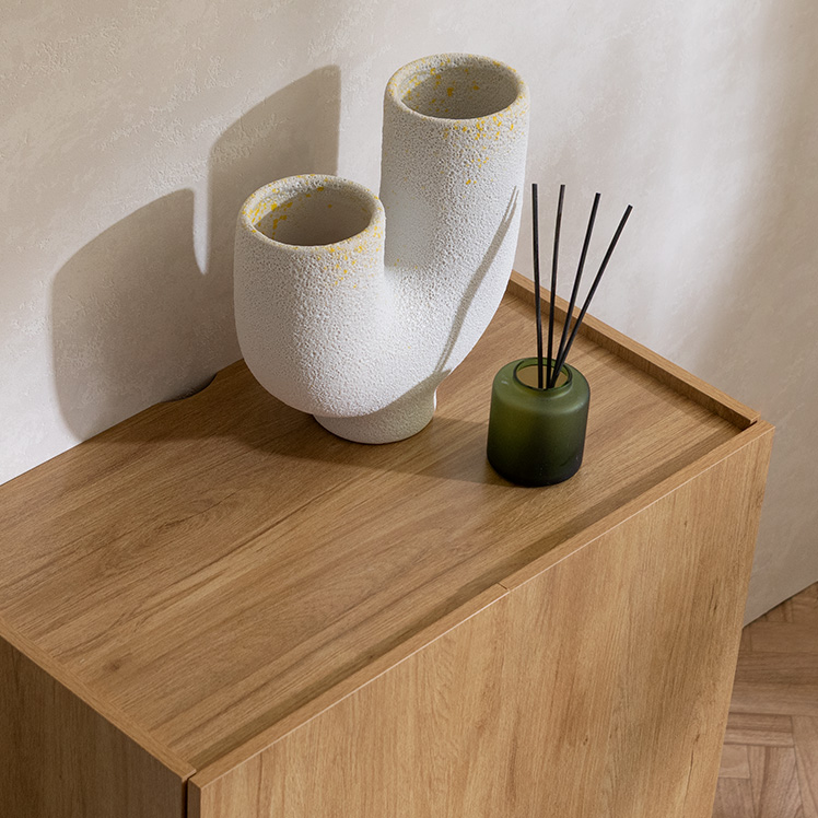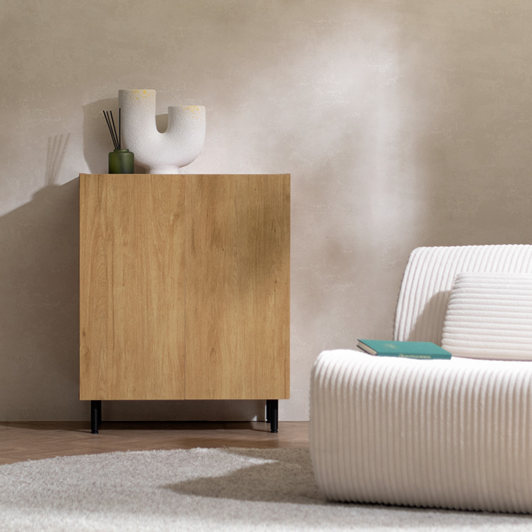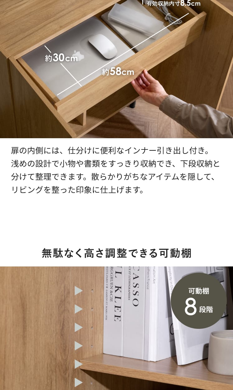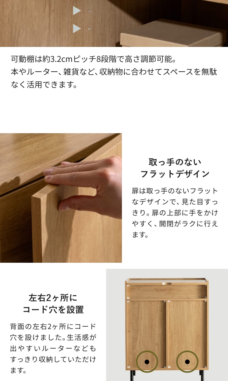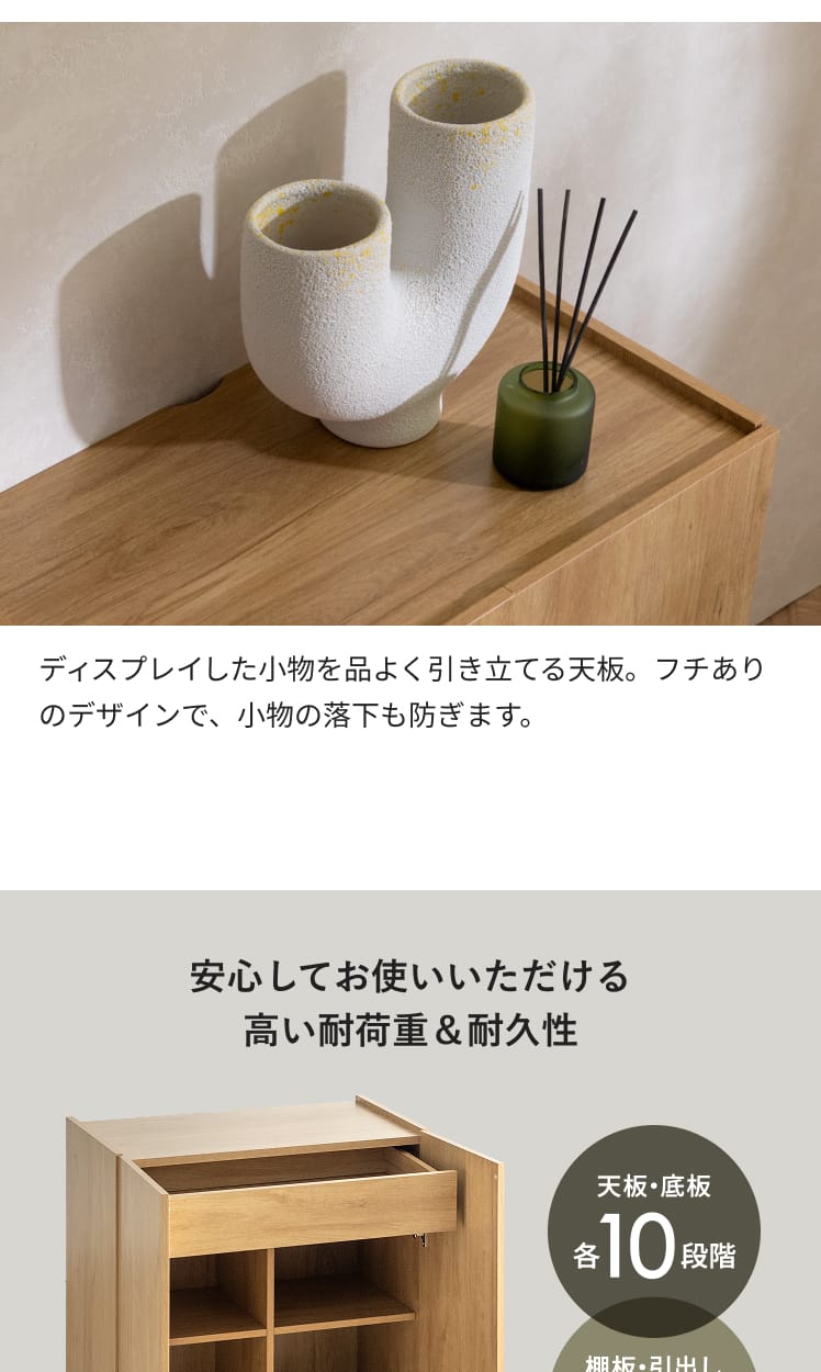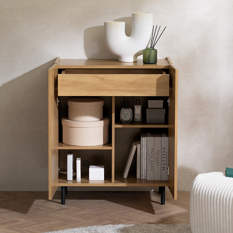 引き出し付きコンパクトキャビネット SOREN〔ソーレン〕 幅70cm/小物の整理に便利なインナー引出しと、たっぷりしまえる収納力を備えたキャビネット“SOREN(ソーレン)”。奥行き約40cmのコンパクトな設計と洗練されたミニマルデザインで、美しく整った空間を叶えます。