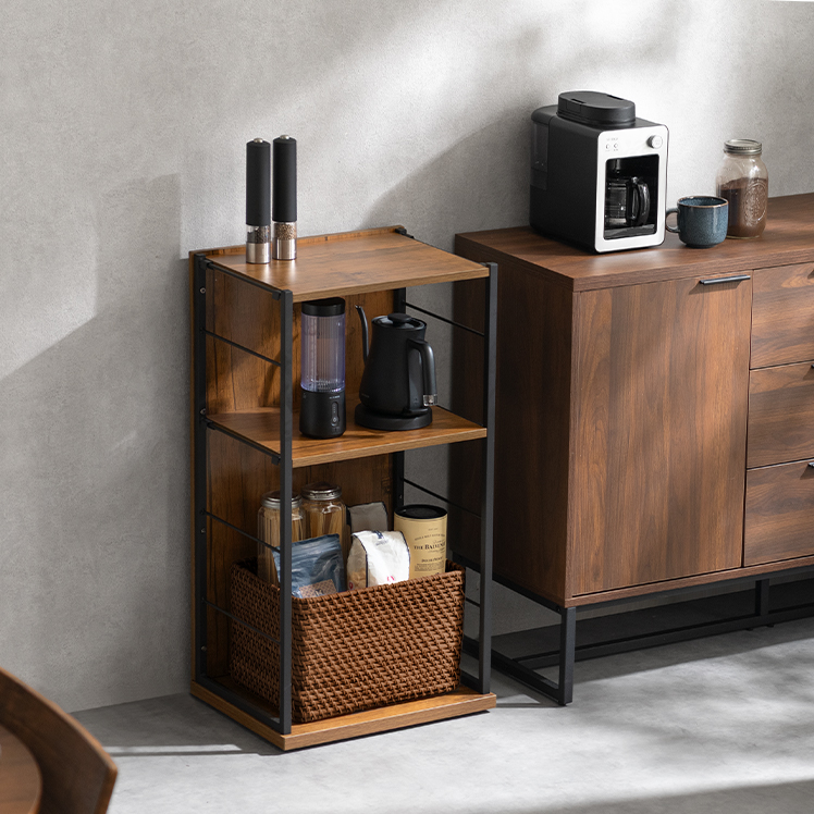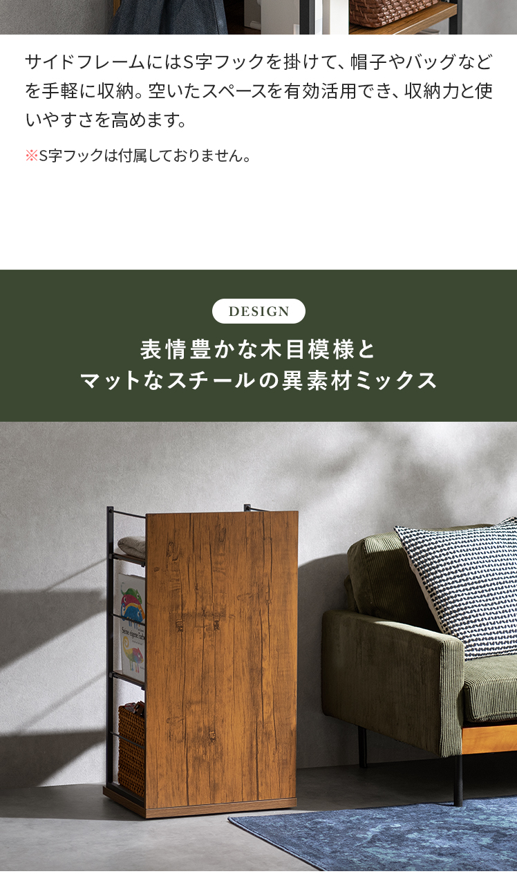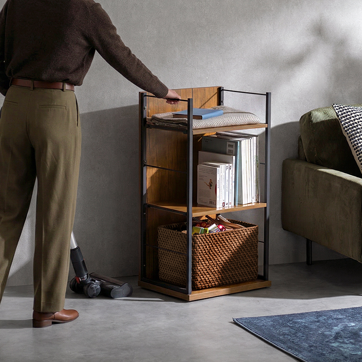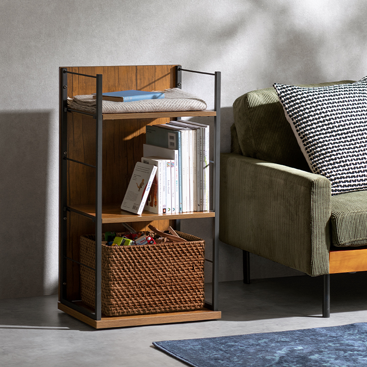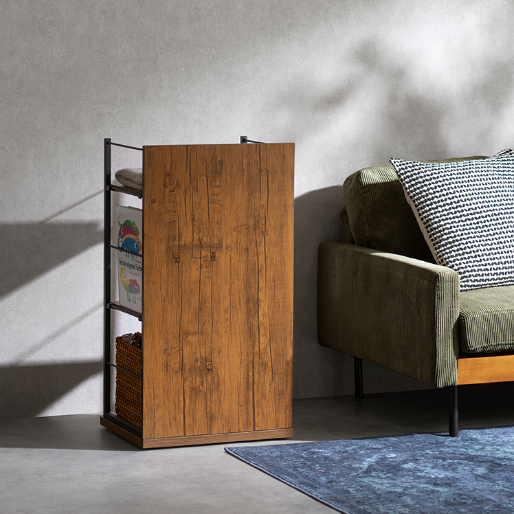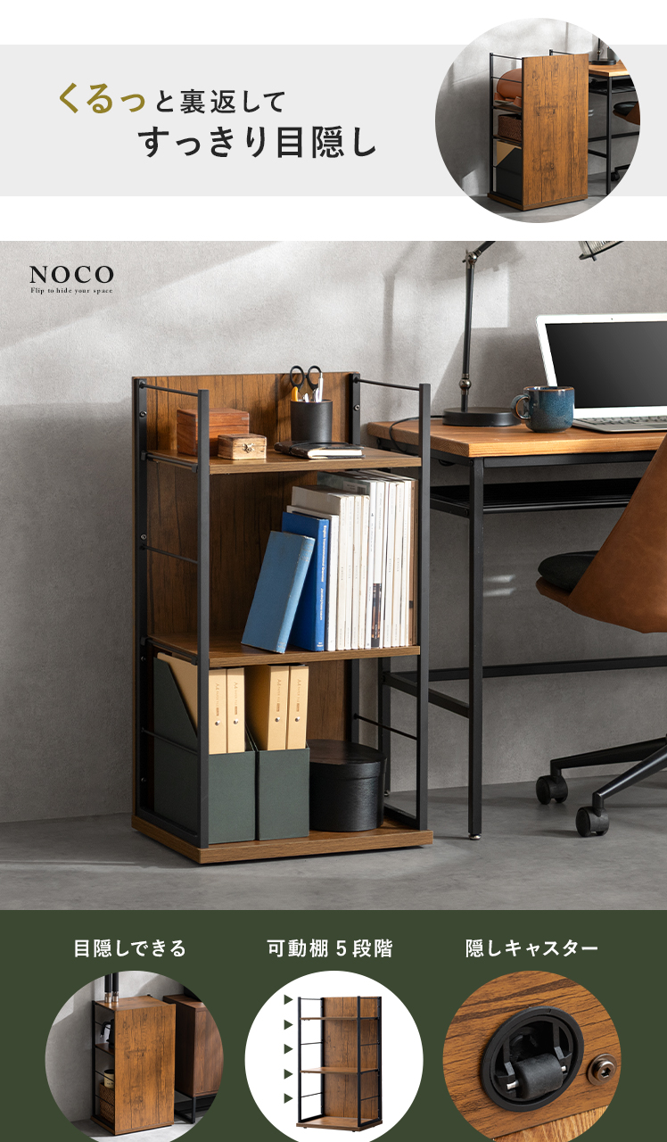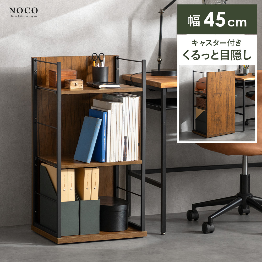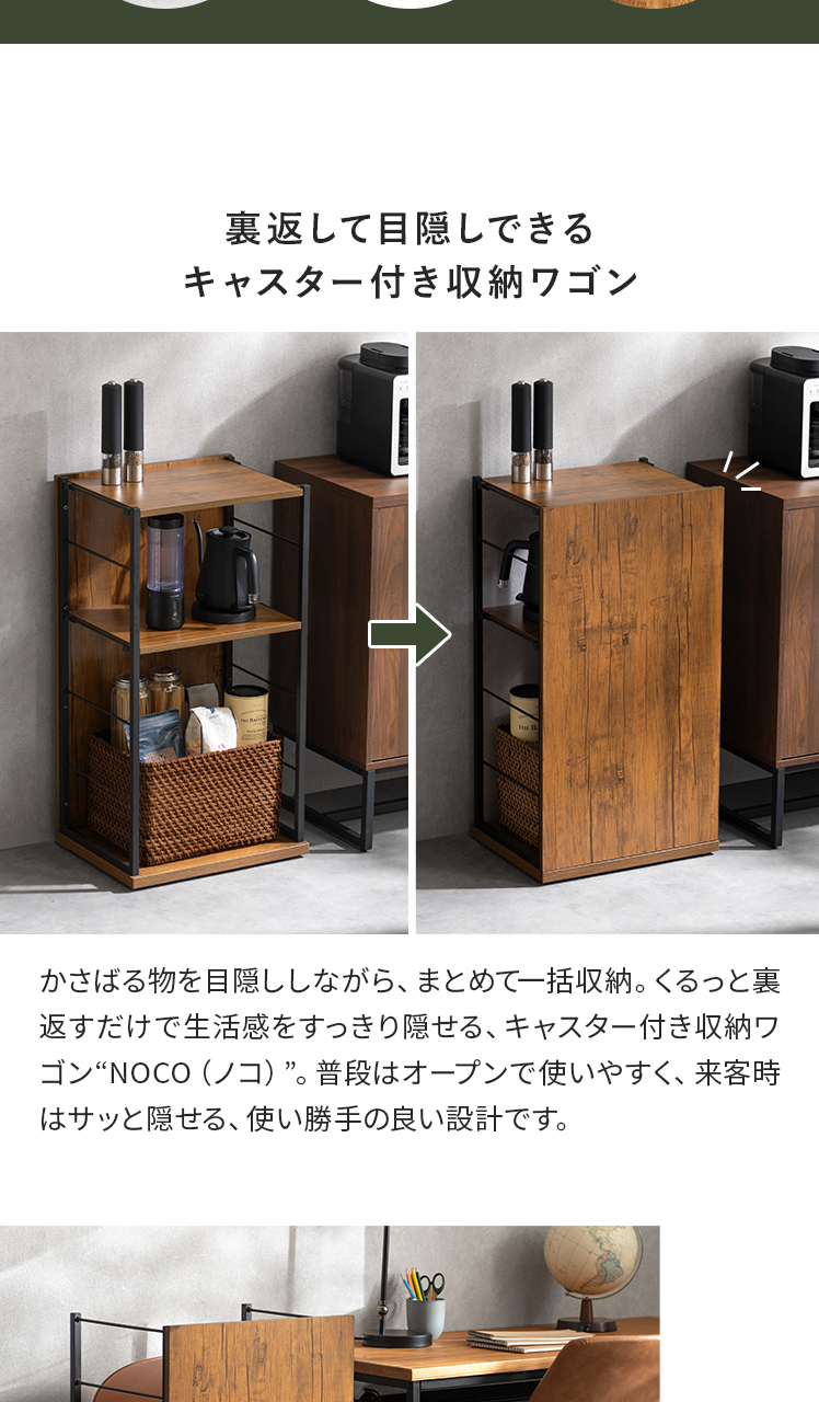 キャスター付き収納ワゴン NOCO〔ノコ〕 3段タイプ/かさばる物を目隠ししながら、まとめて一括収納。くるっと裏返すだけで生活感をすっきり隠せる、キャスター付き収納ワゴン“NOCO(ノコ)”。普段はオープンで使いやすく、来客時はサッと隠せる、使い勝手の良い設計です。