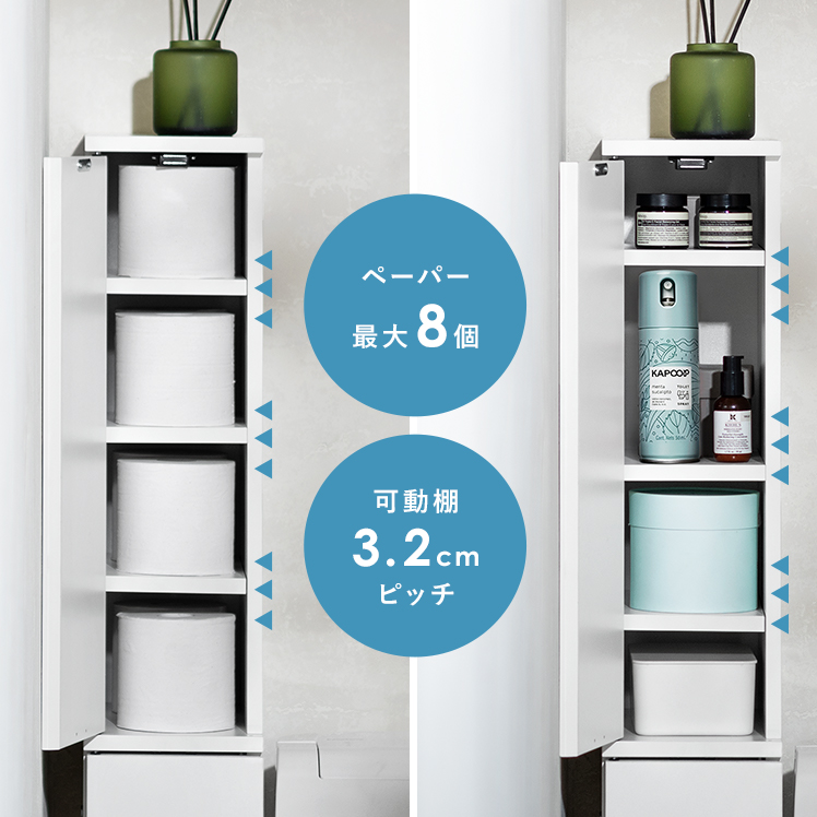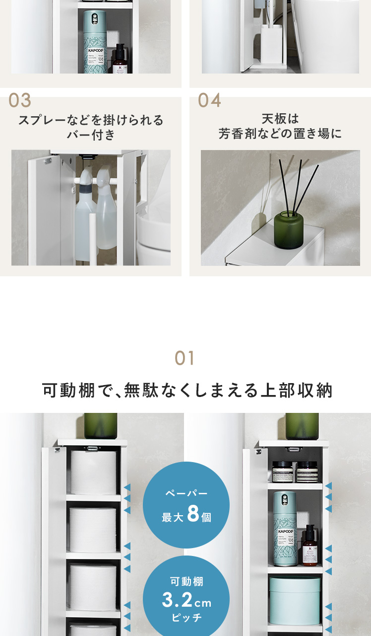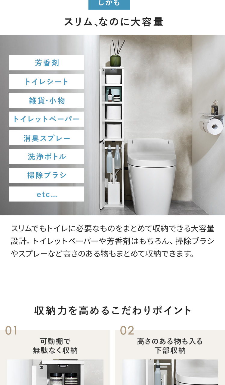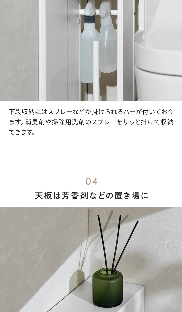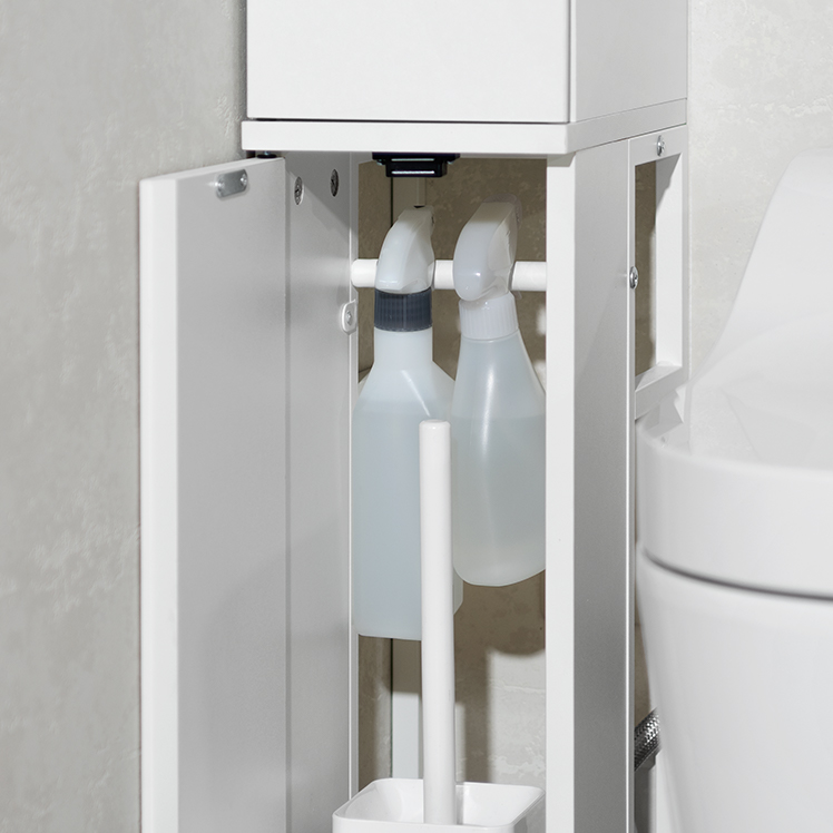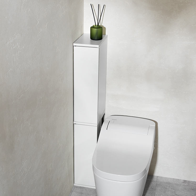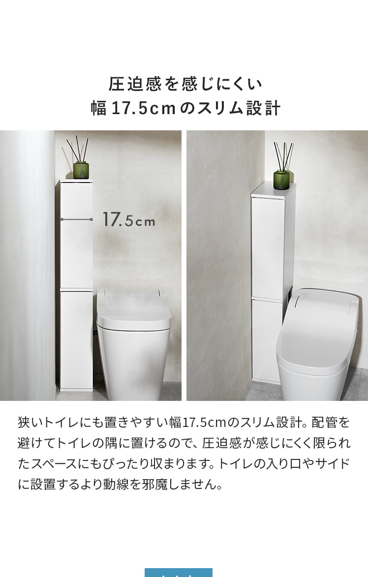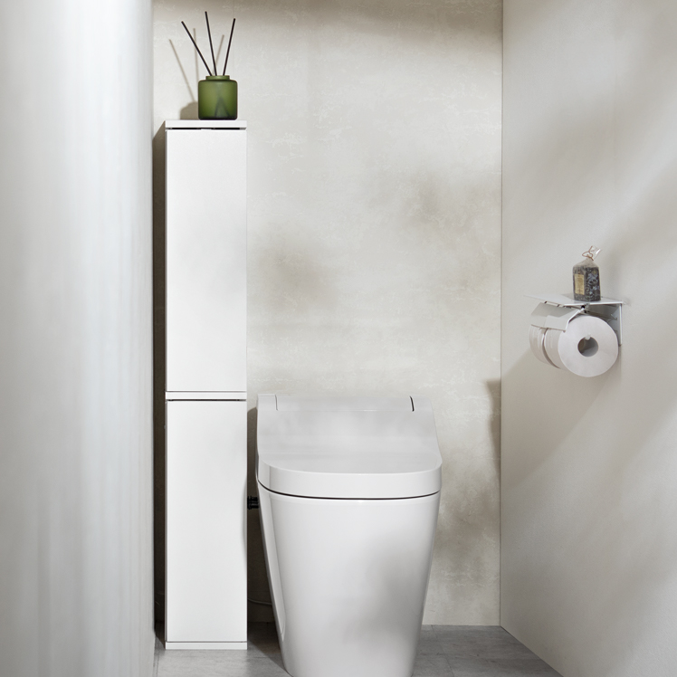 トイレ収納ラック Toali〔トアリー〕/トイレの配管を避けて、角にピタッと置けるトイレ収納ラック“Toali(トアリー)”。側面と背面がオープンな設計で、配管が床と壁どちらに付いていても避けて設置可能。僅かな空間も収納スペースとして確保して賢く収納できます。