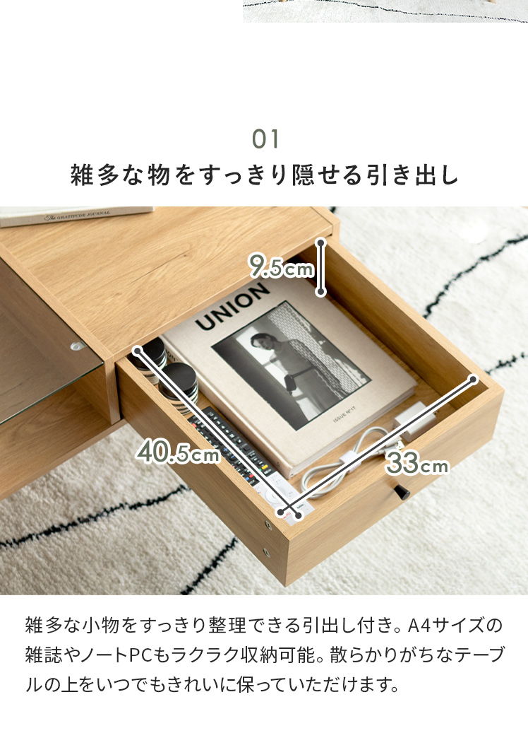 | 引き出し収納内寸 | 約幅33×奥行き40.5×高さ9.5cm |