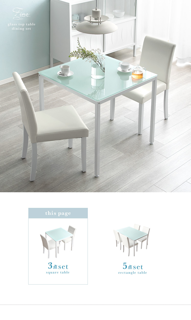 ガラストップダイニング3点セット 【スリムチェアタイプ】
