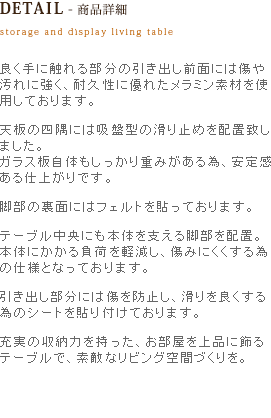 関連カテゴリ: テーブル > ローテーブル・リビングテーブル | オリジナル家具 > テーブル(オリジナル家具) | テーブル > ガラステーブル | テレワーク・在宅勤務おすすめ商品 > テーブル(テレワークおすすめ商品) | テーブル > ローテーブル・リビングテーブル > 収納付きテーブル