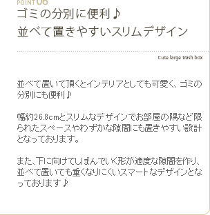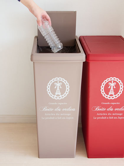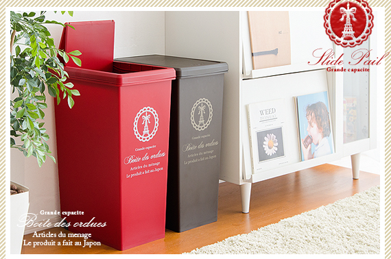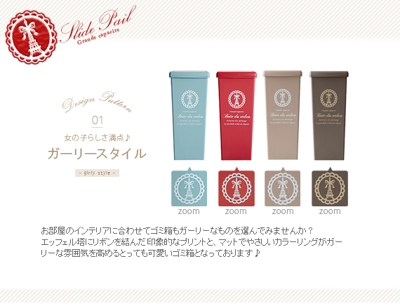 ダストボックス slidepale (スライドペール) 45L / お部屋のインテリアに合わせてゴミ箱もガーリーなものを選んでみませんか?こちらの”スライドペール”はエッフェル塔にリボンを結んだ印象的なプリントとマットでやさしいカラーリングがガーリーな雰囲気を高めるとっても可愛いゴミ箱となっております♪